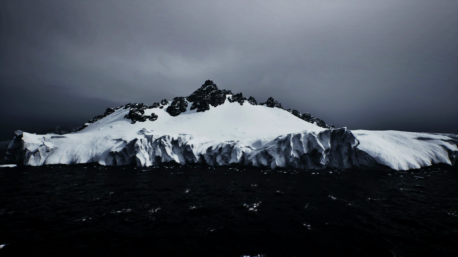 Hostile Ocean Scene With Snowcapped Heights And Turbulent Waves