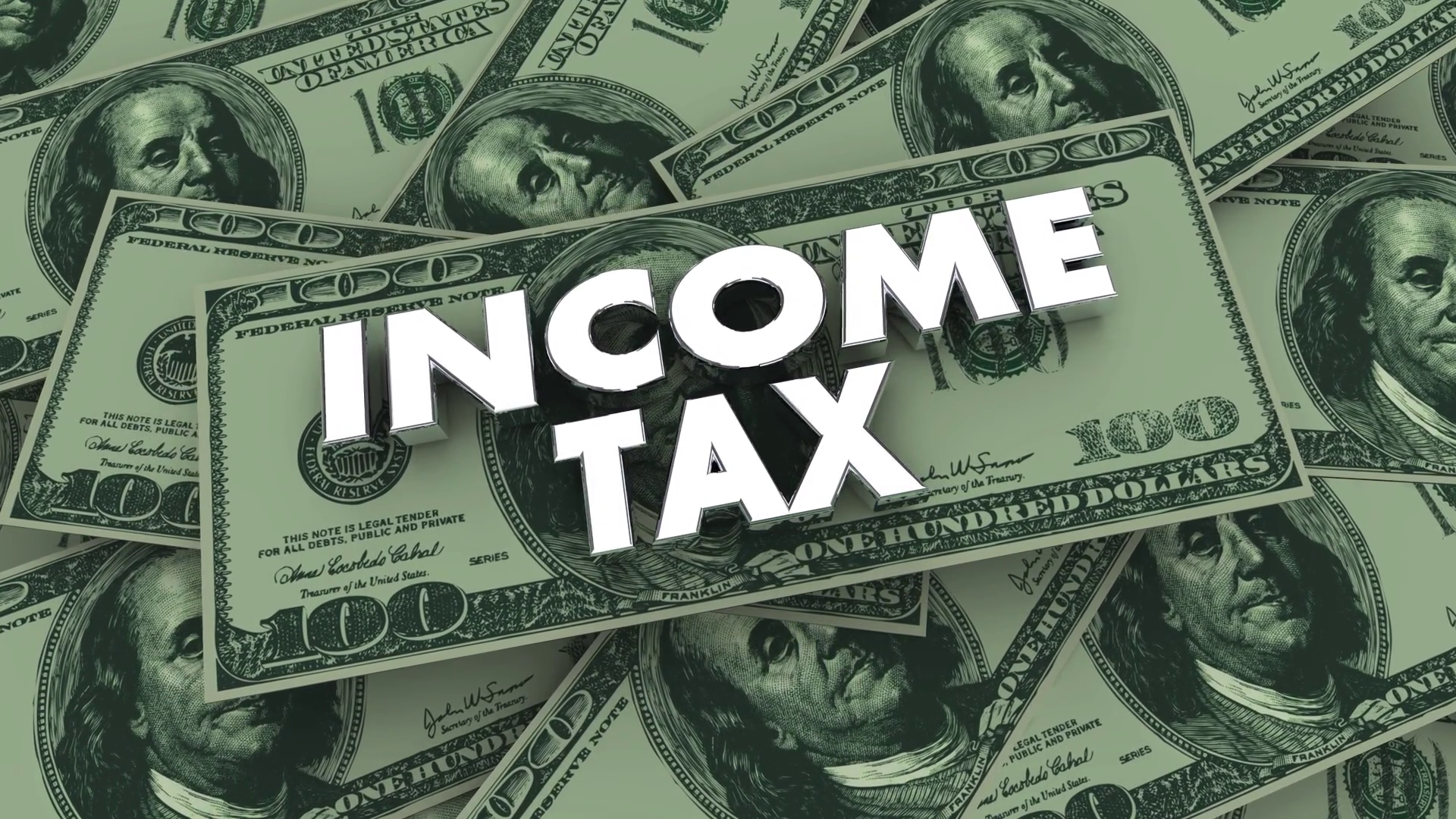 Income Tax Earnings Money Owed Taxable Capital Gains Cash Pile 3 D Animation