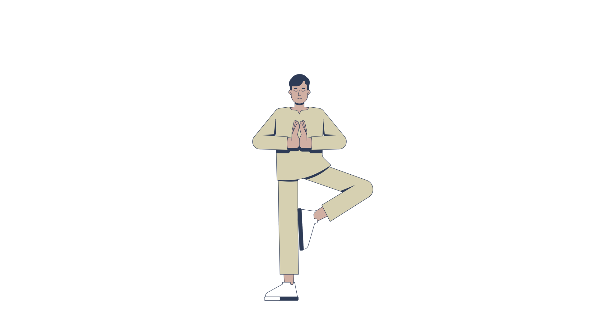 Indian Man Practicing Tree Pose In Yoga 2d Character Animation Balance Mindful Breathing Inner Peace Holistic Fitness South Asian Guy Animated Person Cartoon 4k Video Isolated On White Transparent