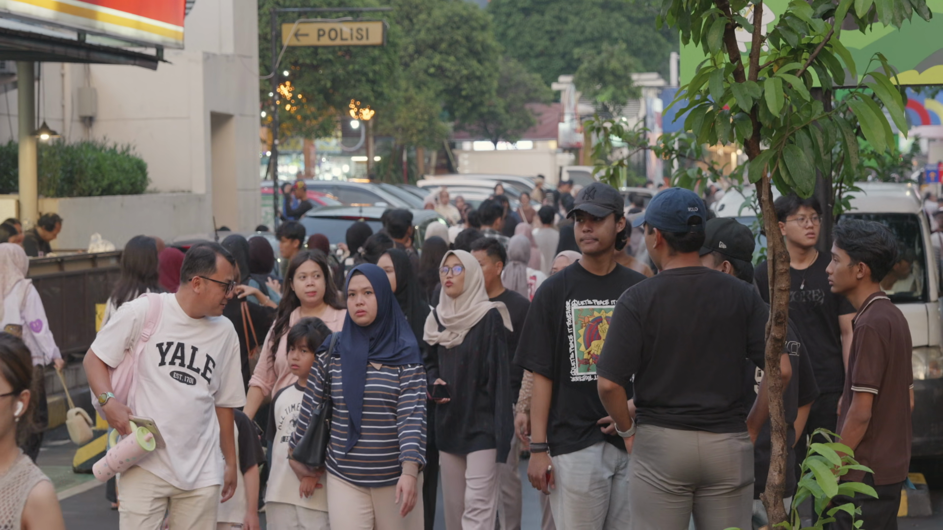 Large Crowds Gathering Around Blok M Area In The Afternoon After Rain Slow MotionÂ