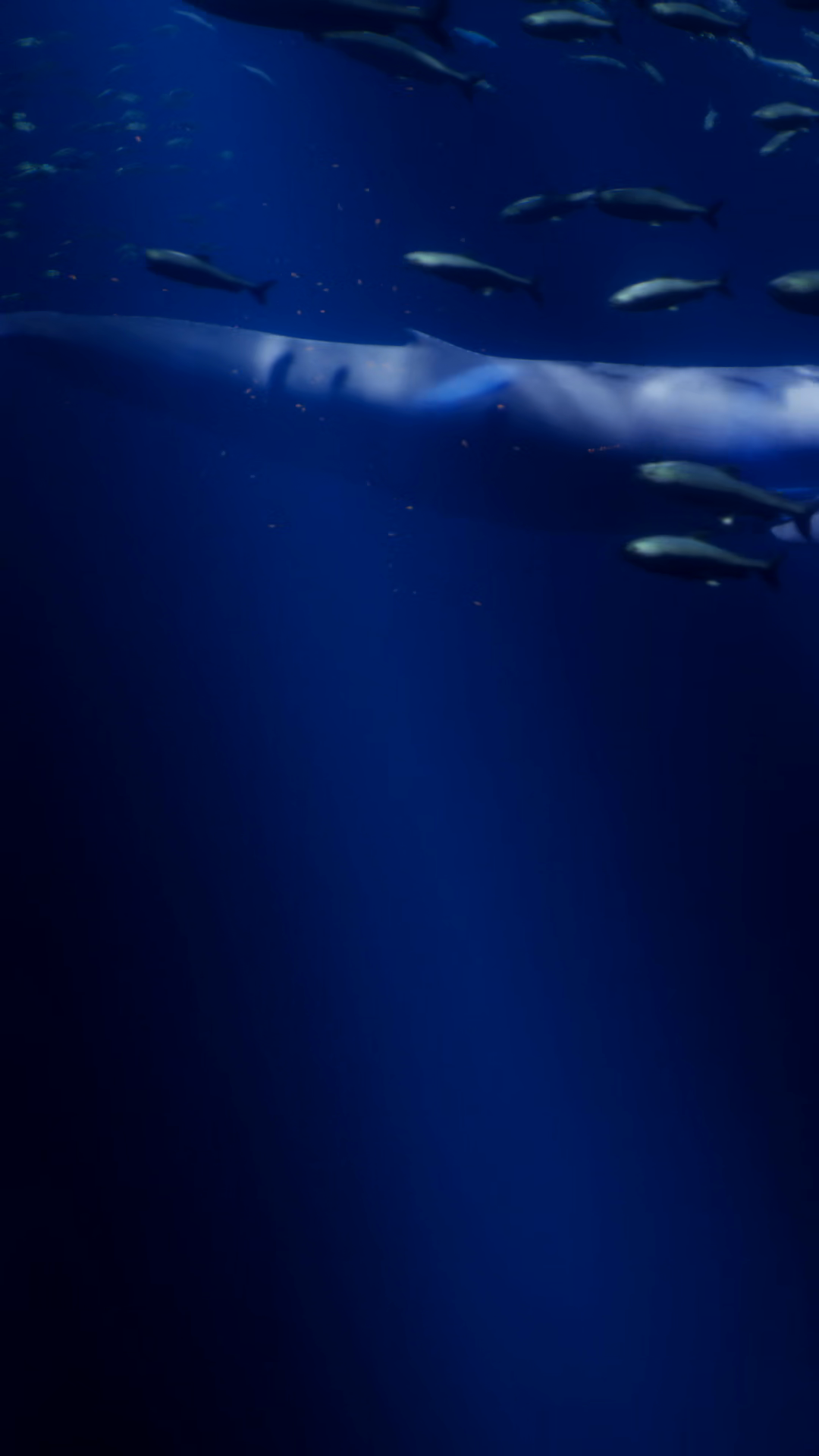 Large Whale Swims In Deep Blue Ocean With Small Fish AroundÂ