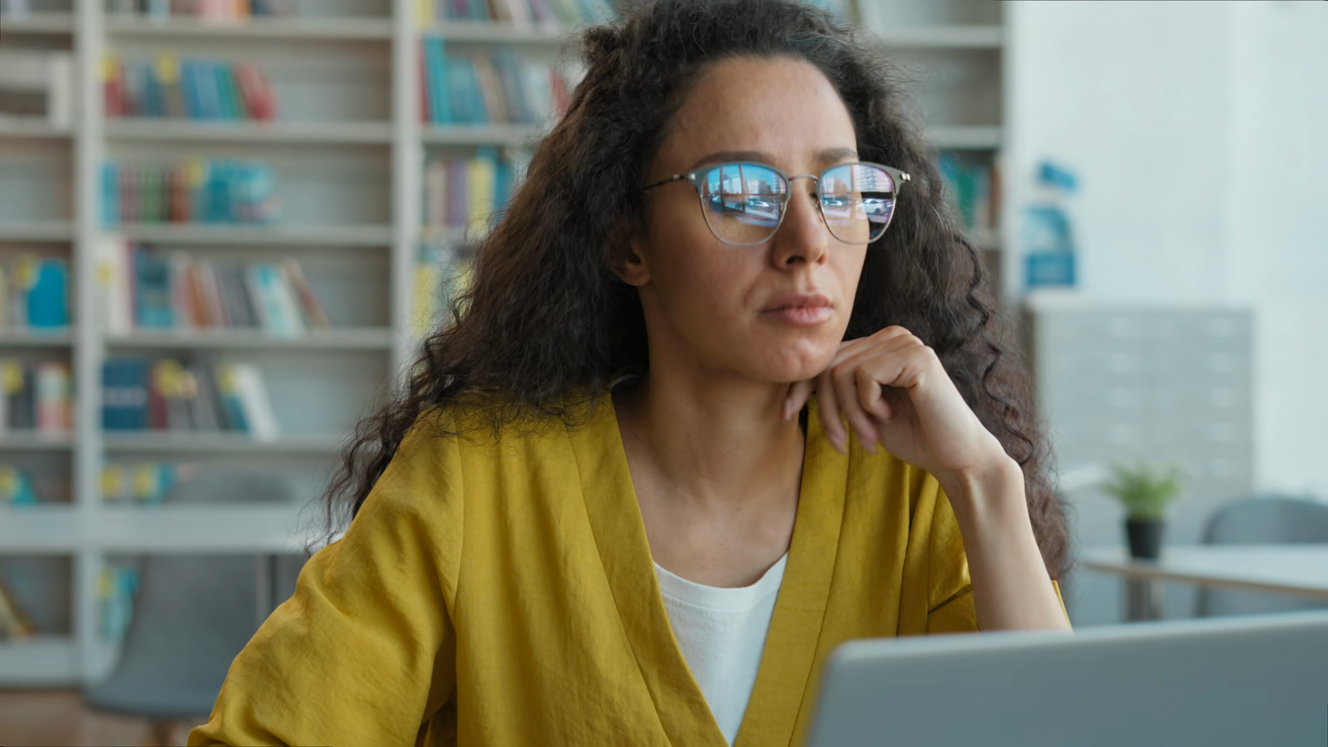 Latina Caucasian Hispanic Woman Working Typing Laptop Desktop Computer Pc Library University Research Project Educate Technology ElearningÂ