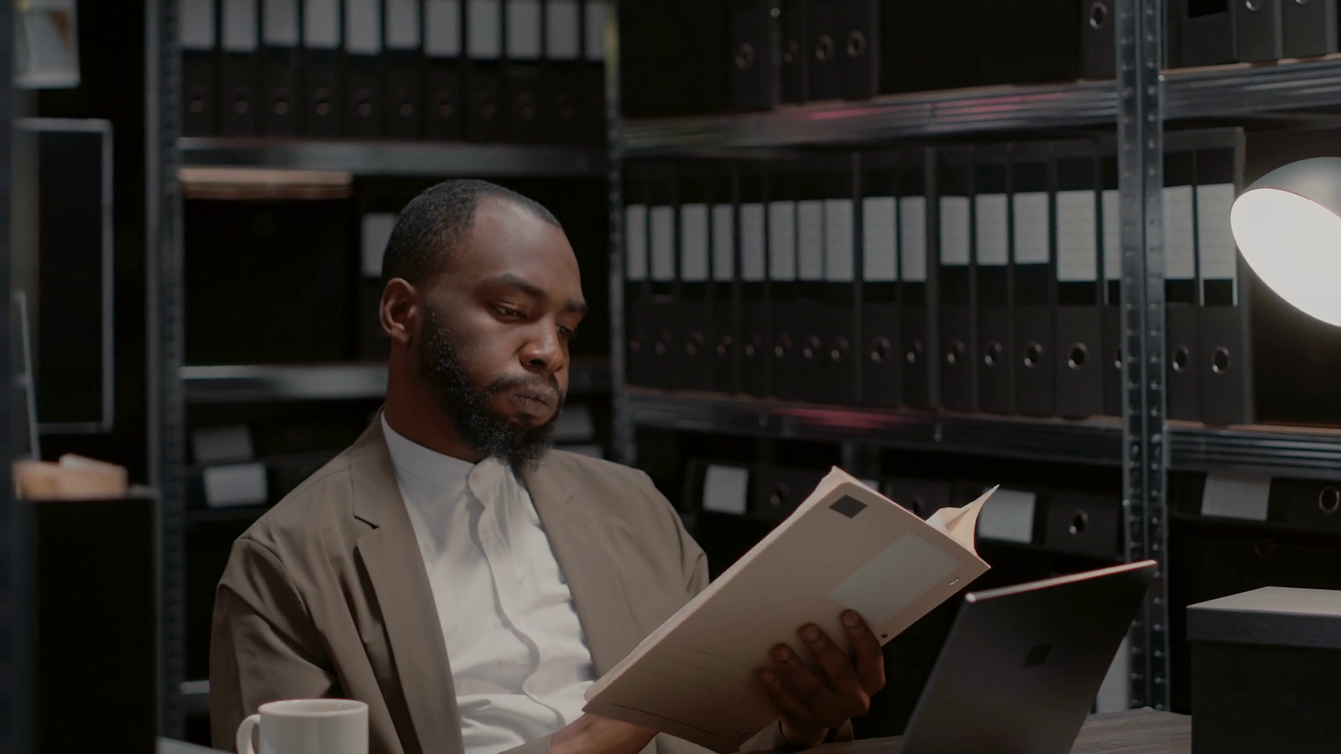 Law Officer Examining Physical Evidence In Case Files Using Criminal Records And Information Professional Agent Conducting Private Investigation Analyzing Clues From Archive FoldersÂ