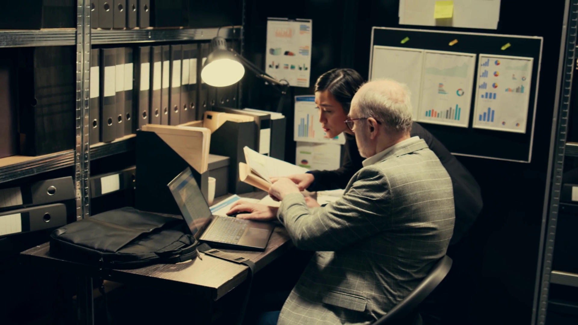 Law Officers Reading Confidential Folders In Archive Room At Private Company Gathering Information To Conduct Investigation DetectivesÂ