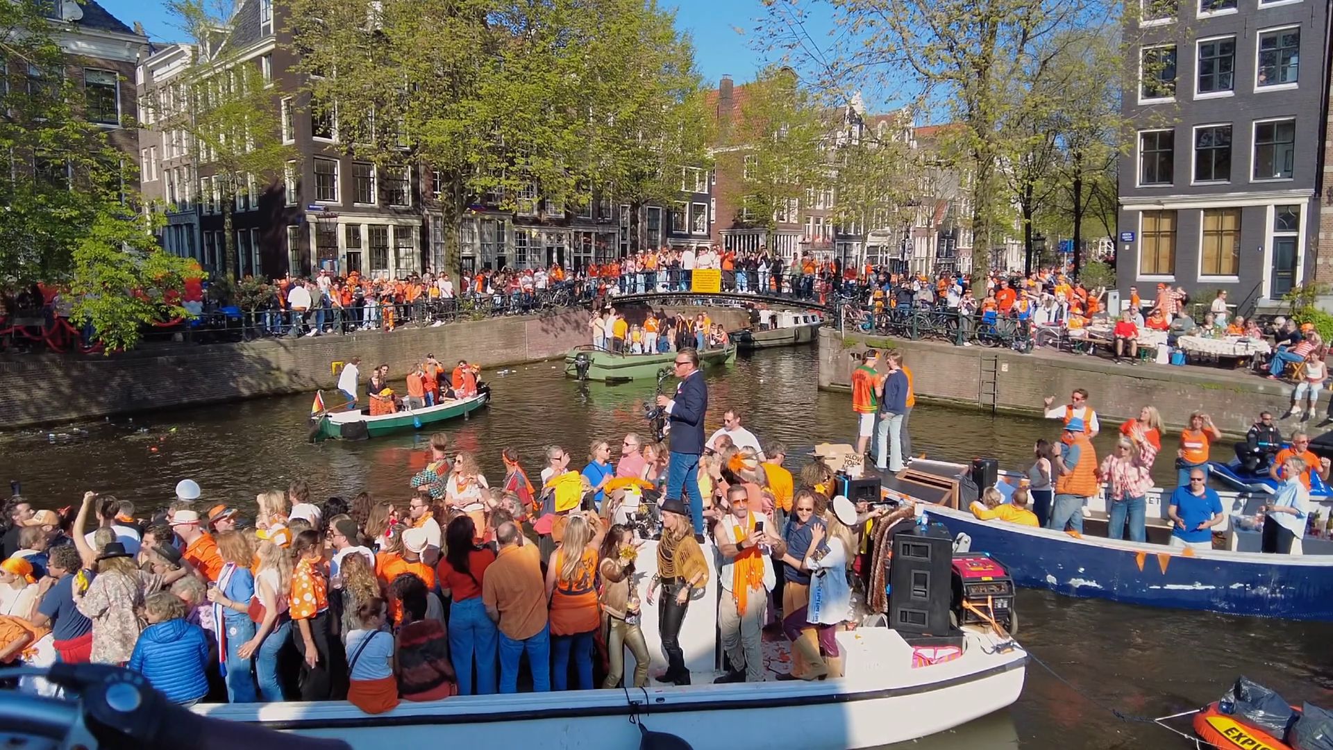 Locals Celebrating Kings Day On The Canals In Amsterdam The NetherlandsÂ