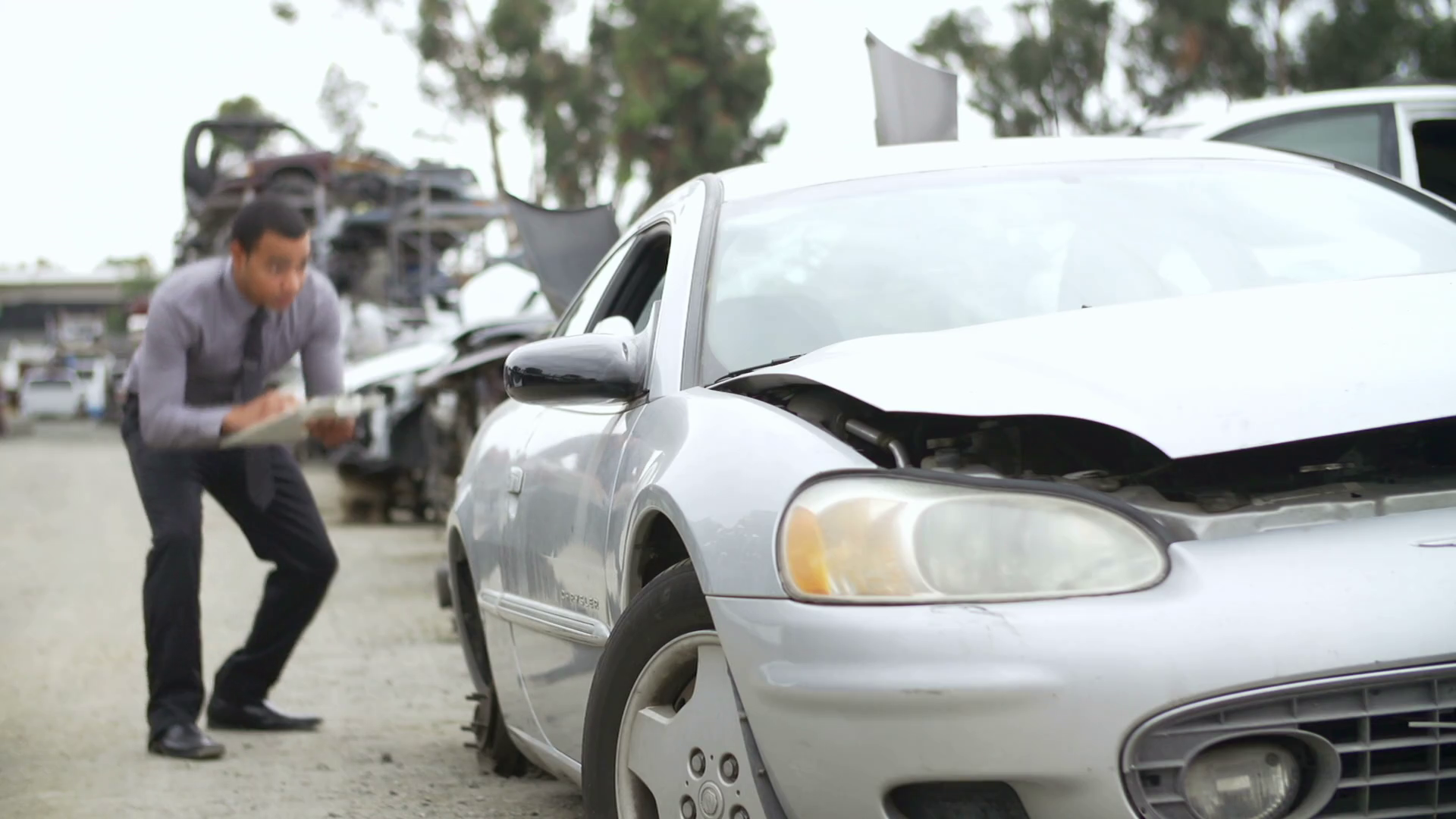 Loss Adjuster Inspecting Car Involved In AccidentÂ