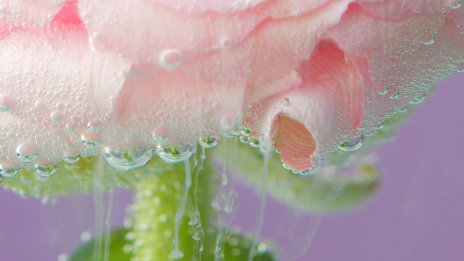 Macro Photography Of A Pink Rose With Green Stem With White Inks Spreading Underwater In Slow Motion Stock Footage Blooming Flower BudÂ