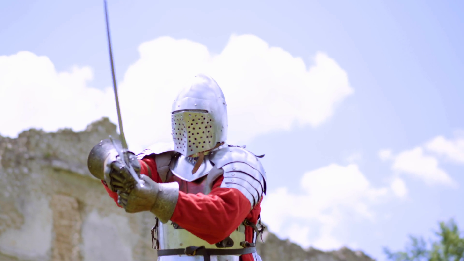 Male In Armor Medieval Warrior Preparing For Battle Historical ReenactmentÂ