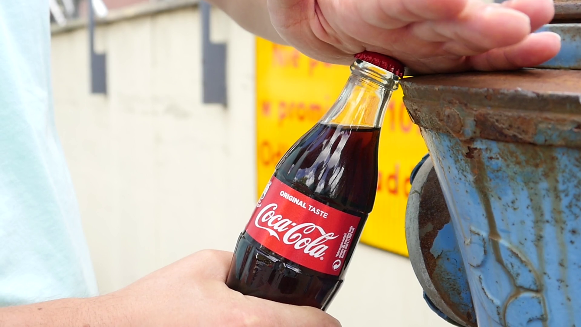 Man Opens A Bottle Of Coca Cola Soda Drink On A StreetÂ
