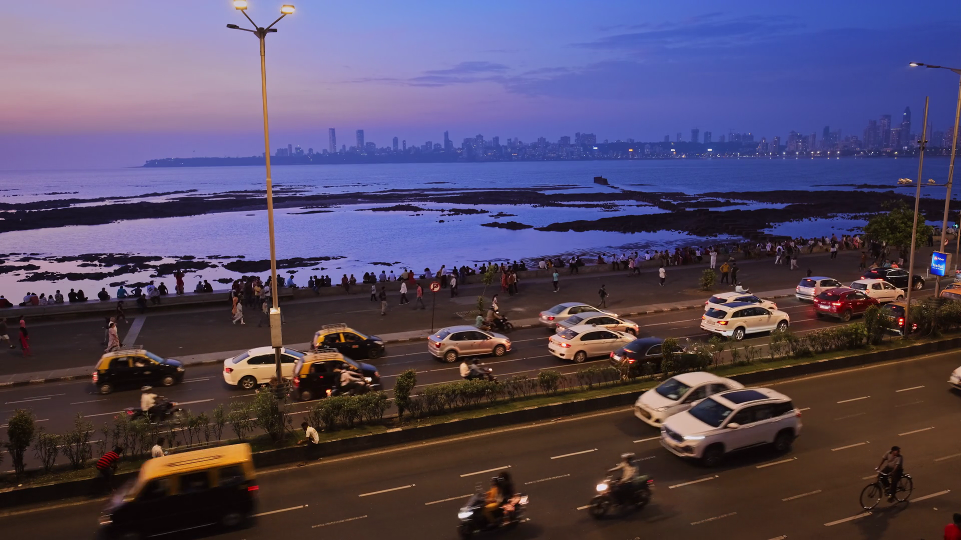 Marine Drive In The Night With Car Heavy Traffic Mumbai Maharashtra IndiaÂ
