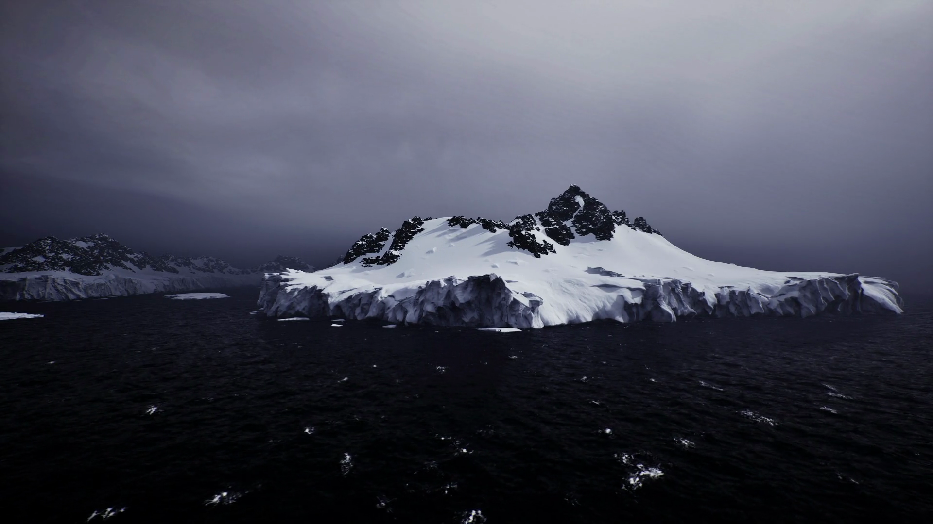 Maritime Danger From Sizable Iceberg Amidst Gloomy Ocean Conditions