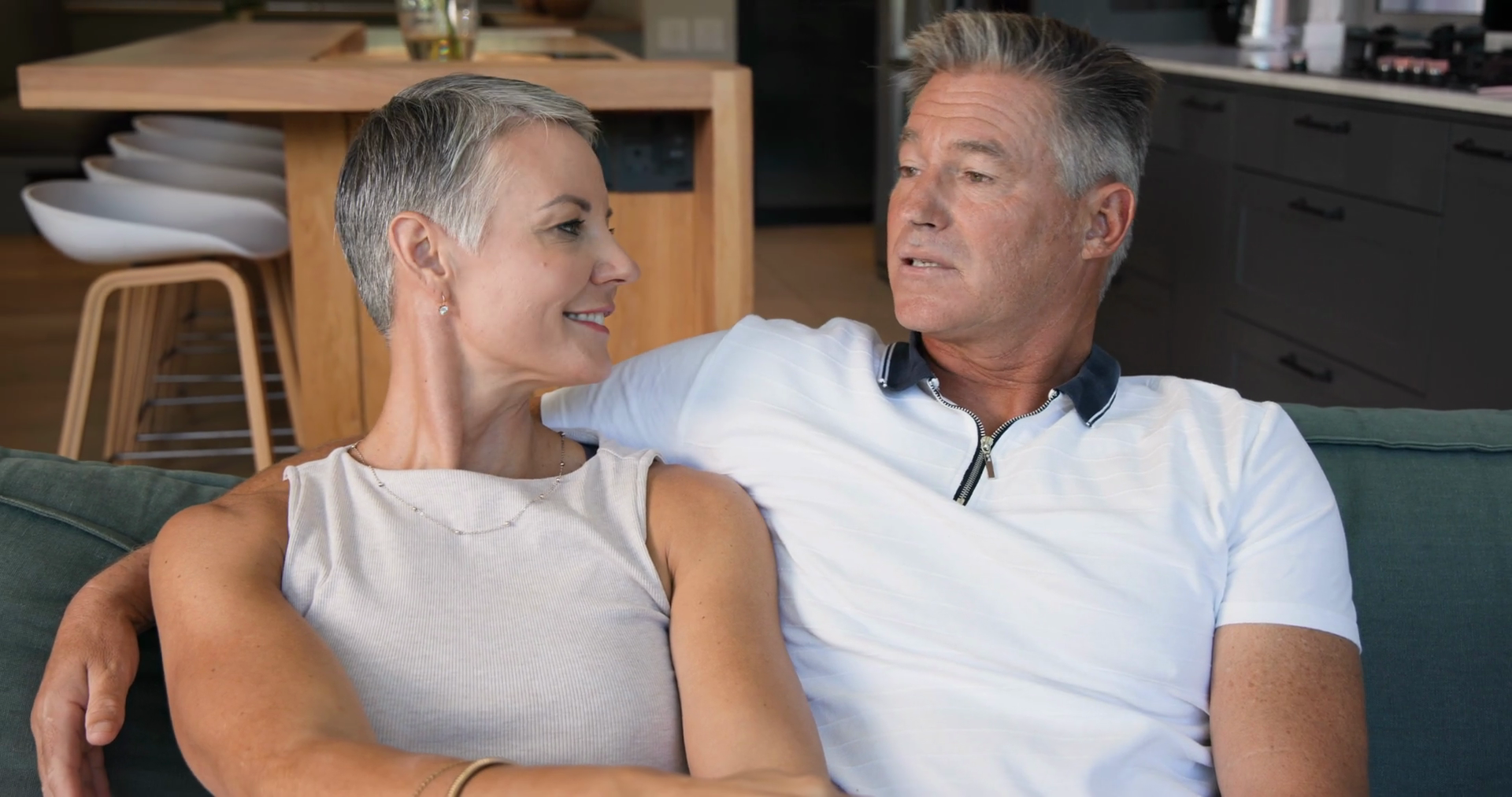 Mature Couple Relaxing On Sofa At Home Sharing Loving Gaze TogetherÂ
