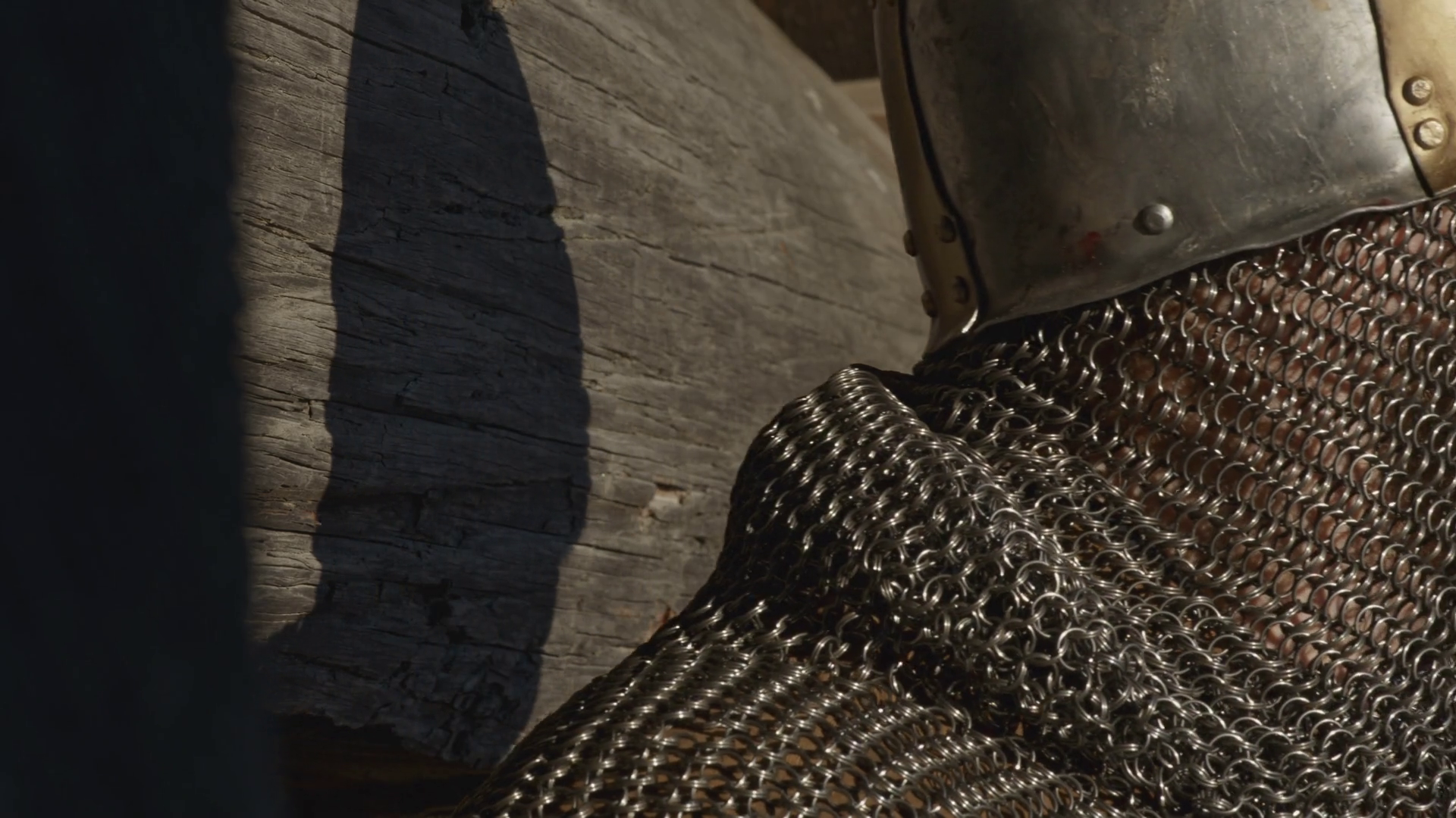 Medieval Old Knight Helmet And Chain Mail For Protection In Battle Media Close Up Side View Of A Man In Very Heavy Headdress Middle AgesÂ