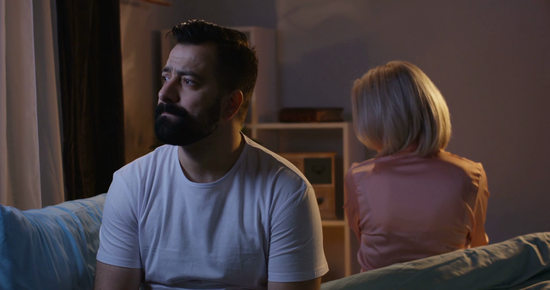 Medium Long Shot Of Couple Having Late Night ArgumentÂ
