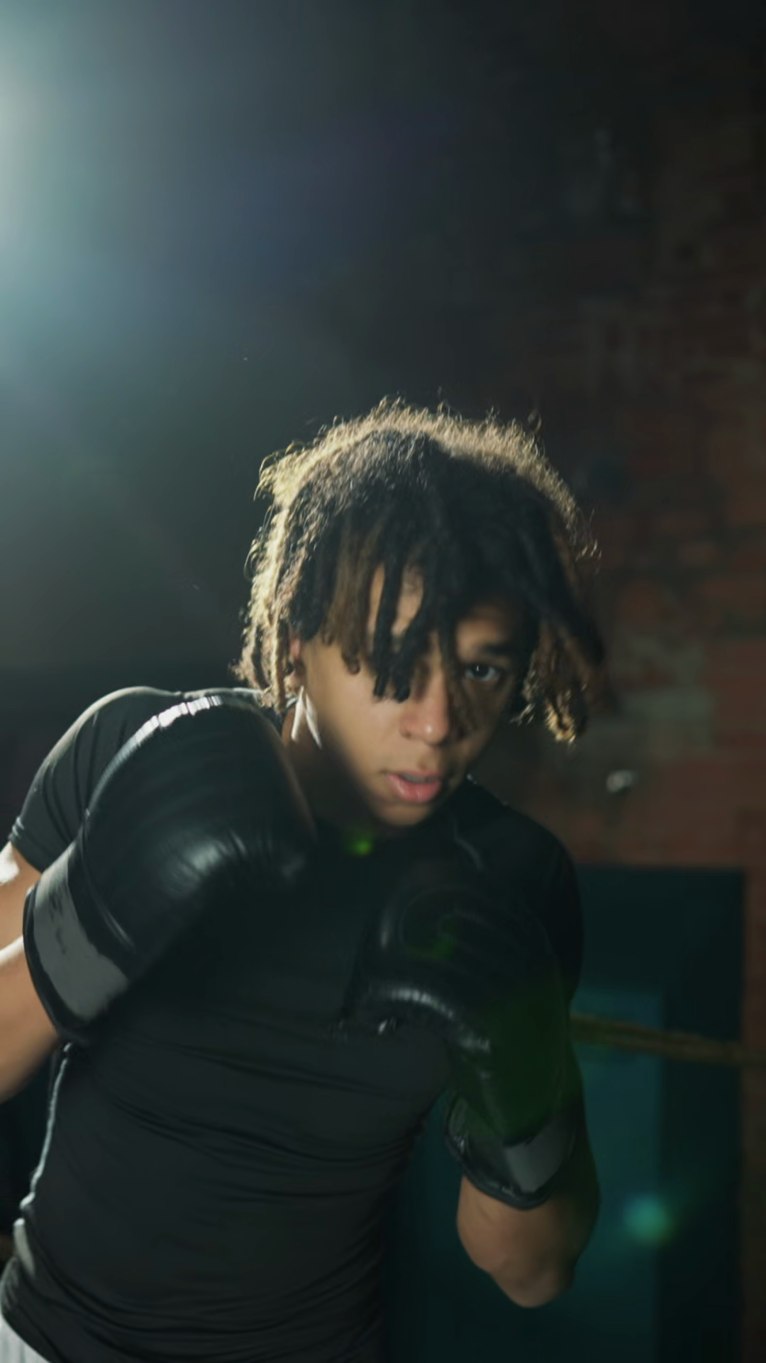 Medium Portrait Shot With Professional Athlete Boxing On Ring Important Competition Or Hard Workout Fighter Practicing Hands Punches InÂ