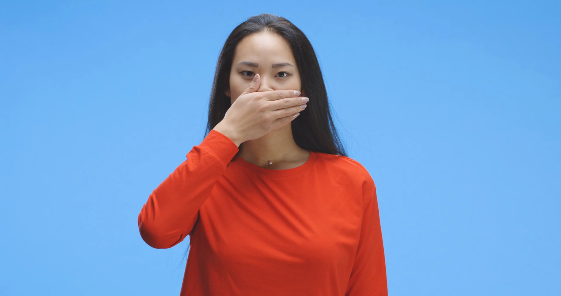 Young Woman Silencing Herself Against Blue BackgroundÂ