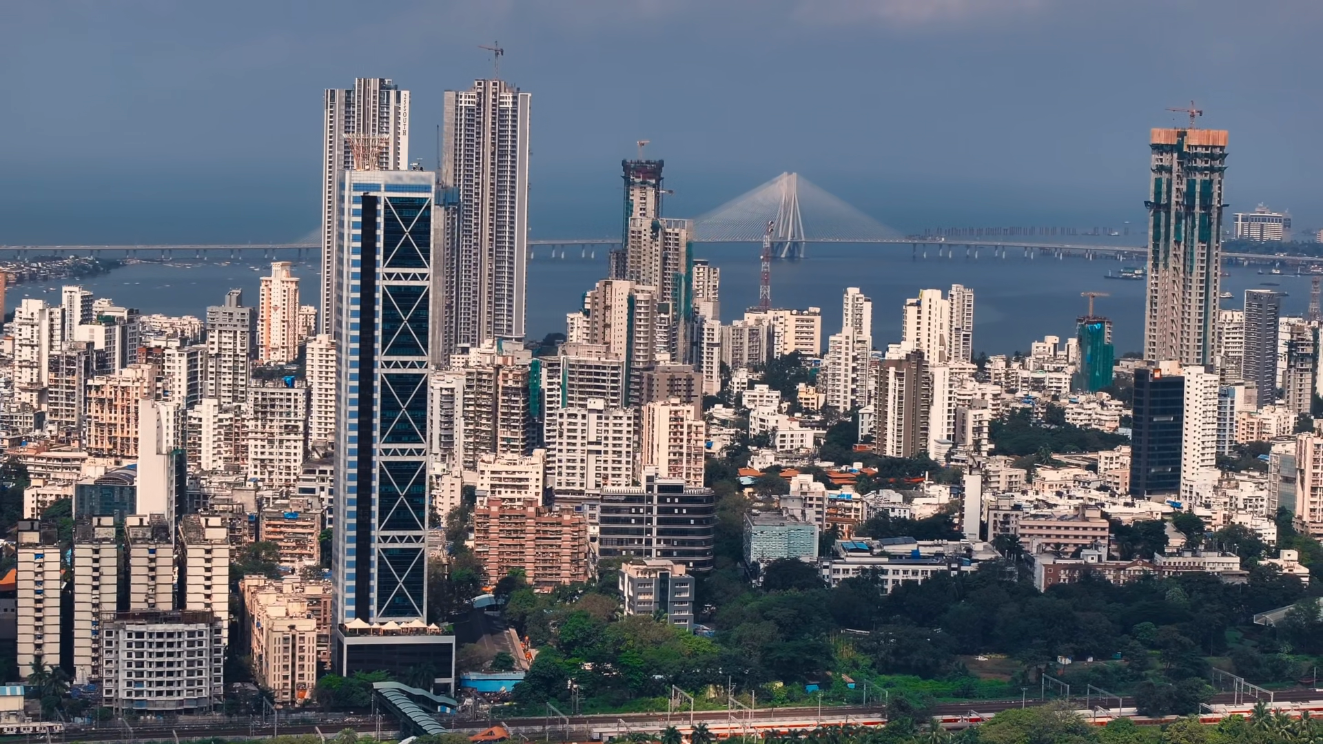 Modern Highrise Skyscrapers In Mumbai A Beautiful Yellow Evening Shot Aerial Drone View Of The Financial District In Mumbai Daytime Mumbai City IndiaÂ