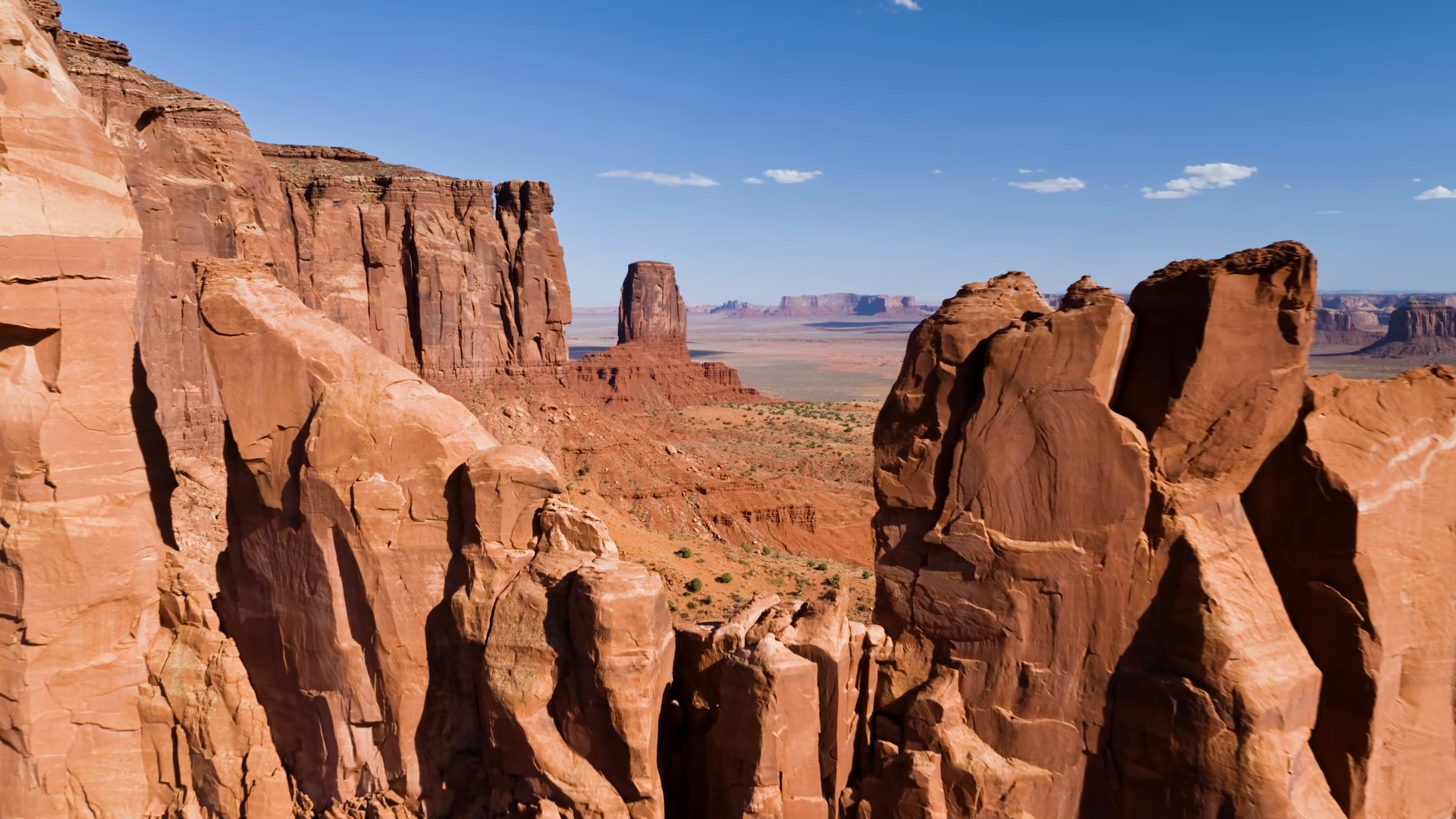 Monument Valley In Arizona Beautiful Red Cliffs Cinematic Aerial In Hfr 8kÂ