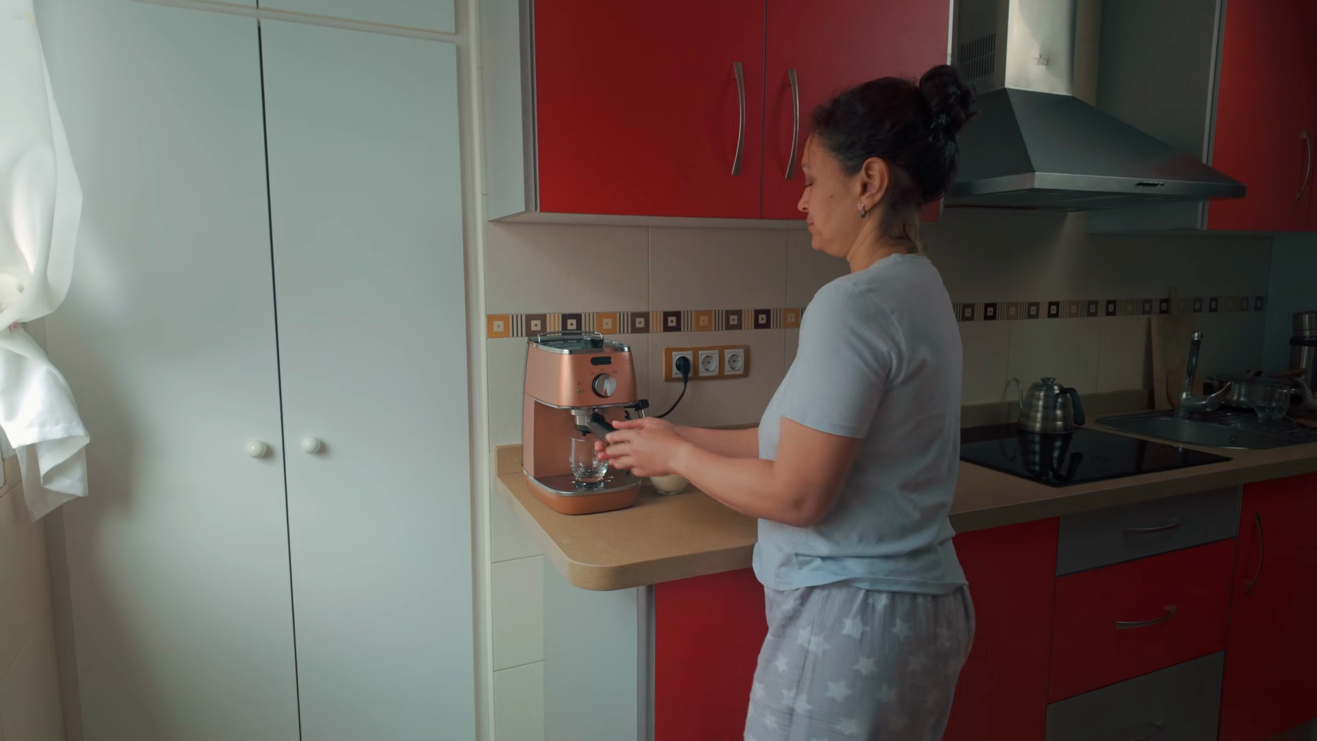 Morning Coffee Routine Of A Woman Making Espresso With Home Coffee MachineÂ