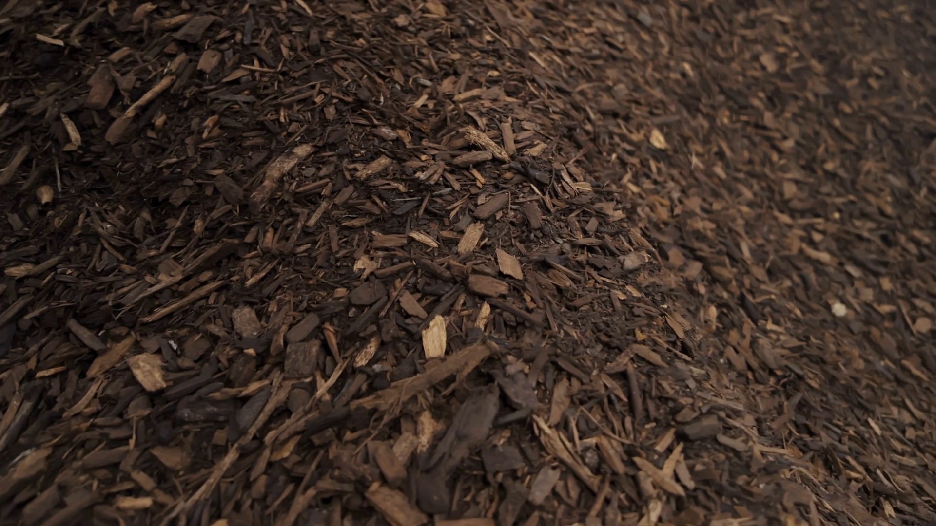 Mulching Garden Plants With Tree Bark Mulch Landscape Maintenance Close Up ViewÂ