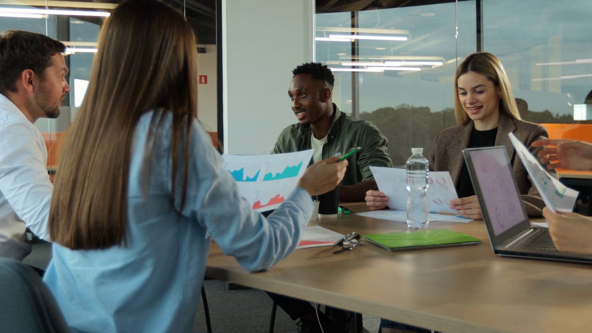 Multiethnic Group Of People In Modern Office Creative Business Team Working On Project Together Laughing And SmilingÂ