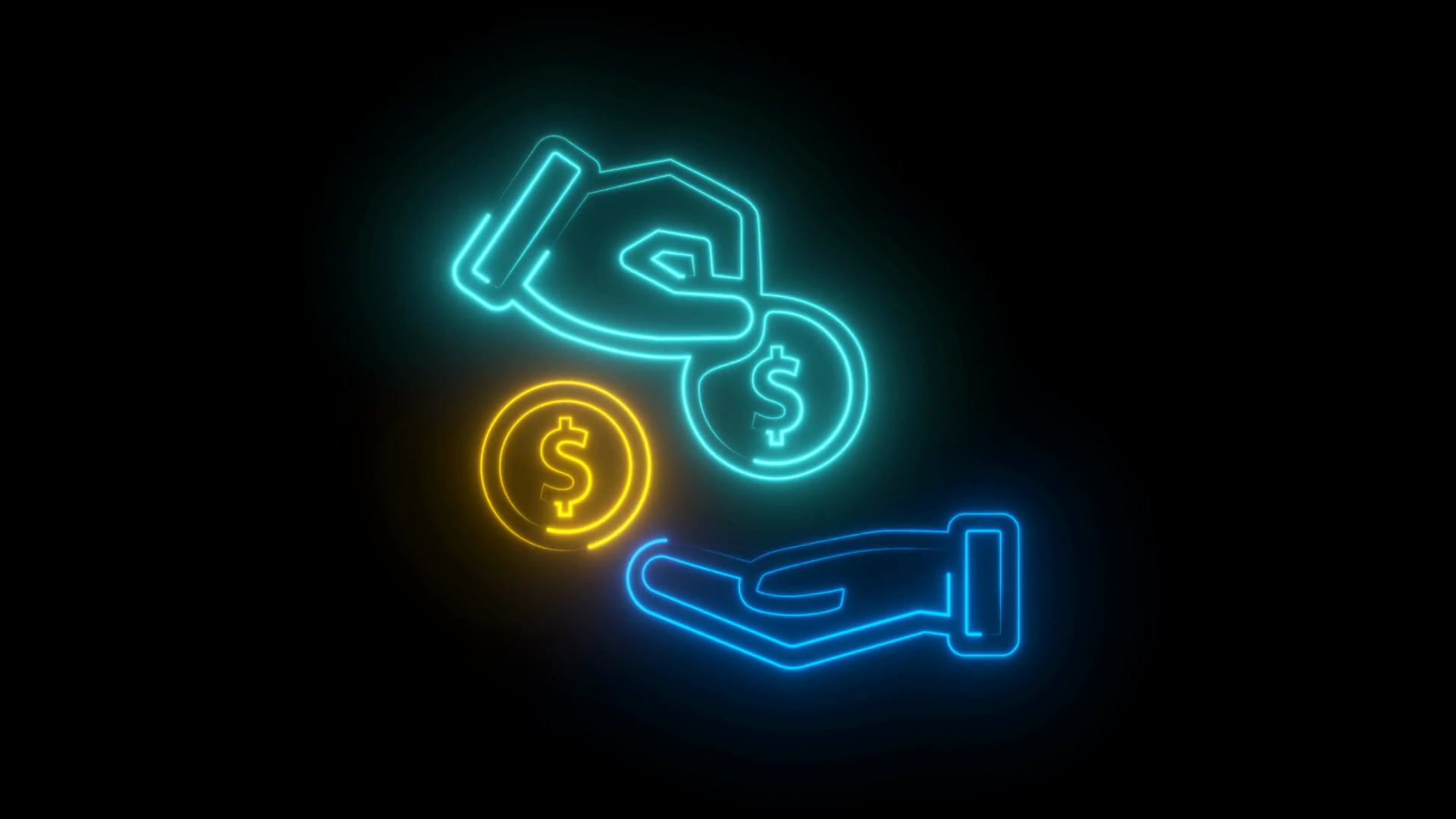 Neon Hand Gives Dollar Coins To Another Hand Investment On Black Background