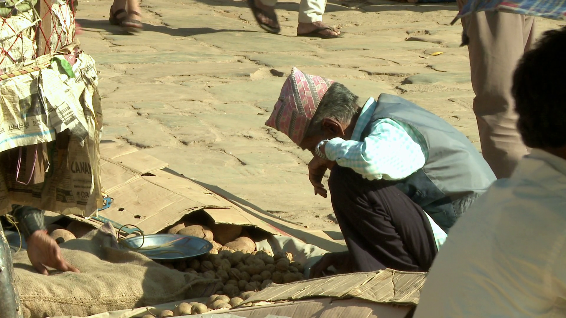 Nepali Man Sorts Through Nuts In MarketplaceÂ