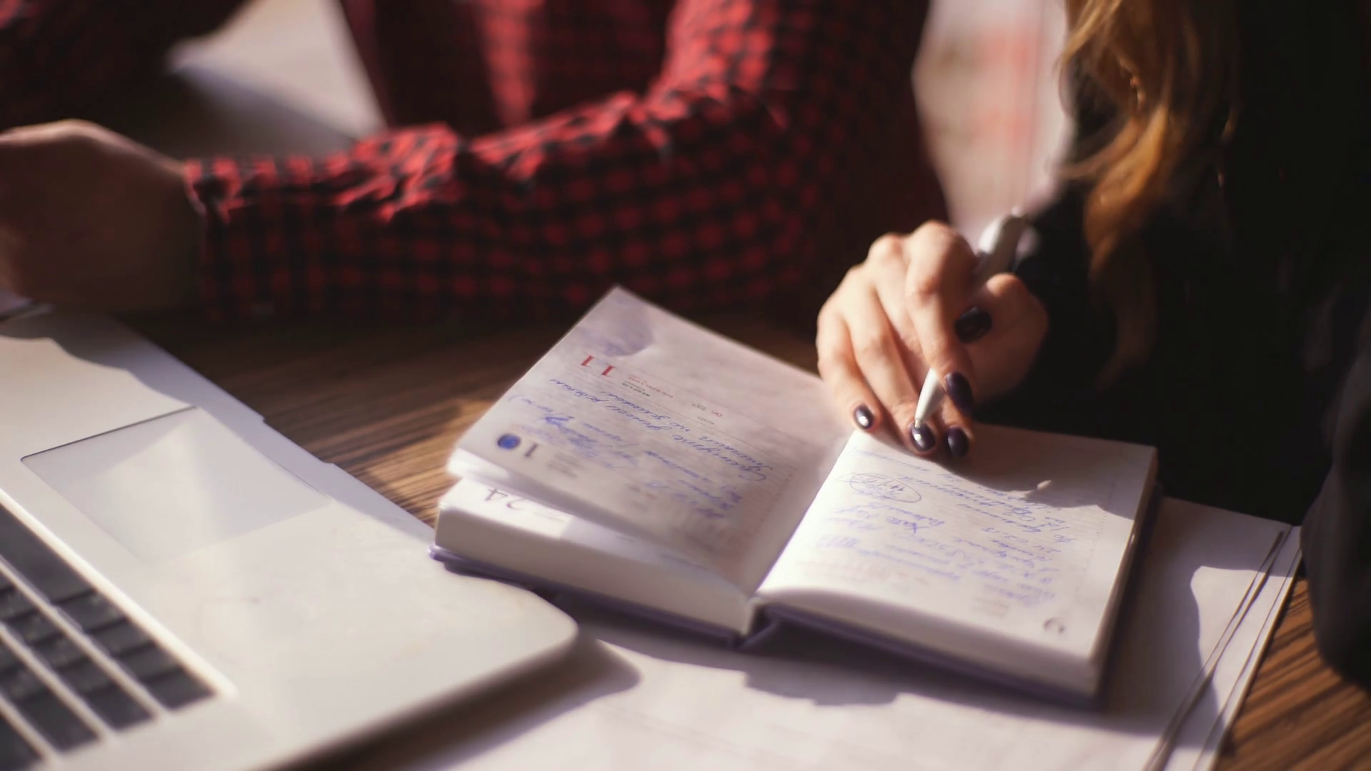 Notepad Closeupbisiness People Discuss Working In A CafeÂ