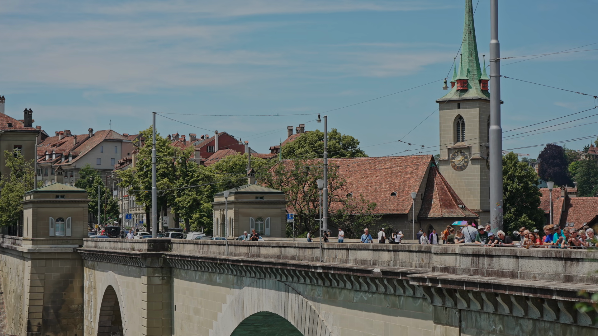 Nydegg Bridge And Nydegg Church Tower In Bern Old Town Switzerland Filmed On 18 June 2025 Editorial FootageÂ
