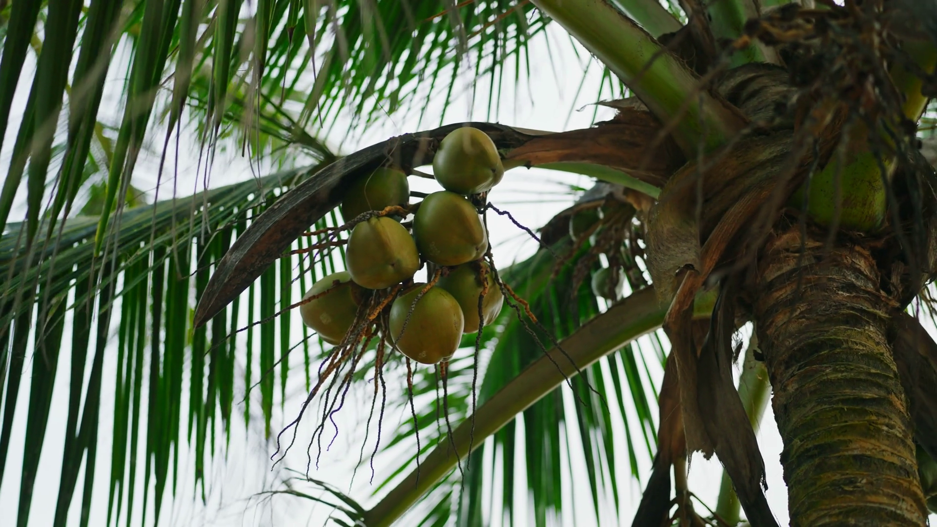Palm Tree With Green Coconuts Bottom View Fresh Coconuts On Palm Coconut Palm Trees Bottom View Coconut Palm Tree In Tropics Coconut Tree Plantation For Coconut Water Production Tropical ConceptÂ
