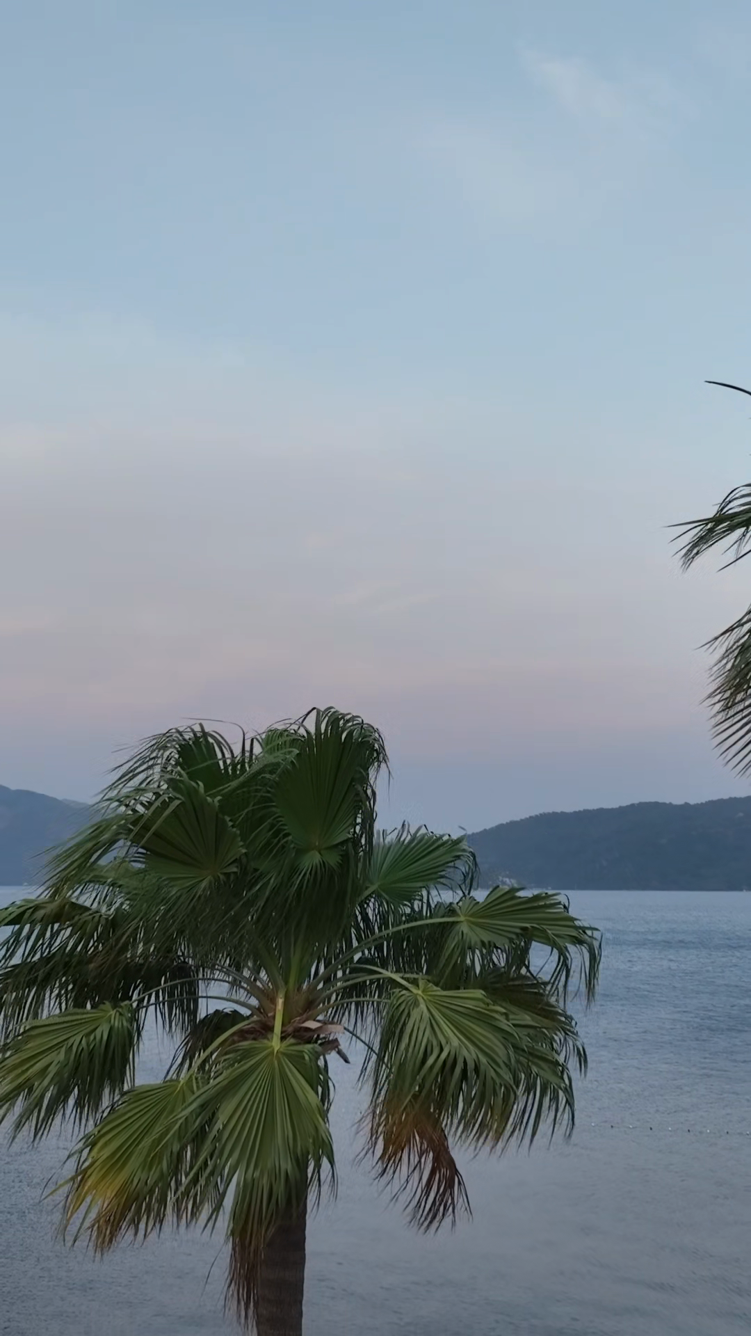Palm trees sway gent...