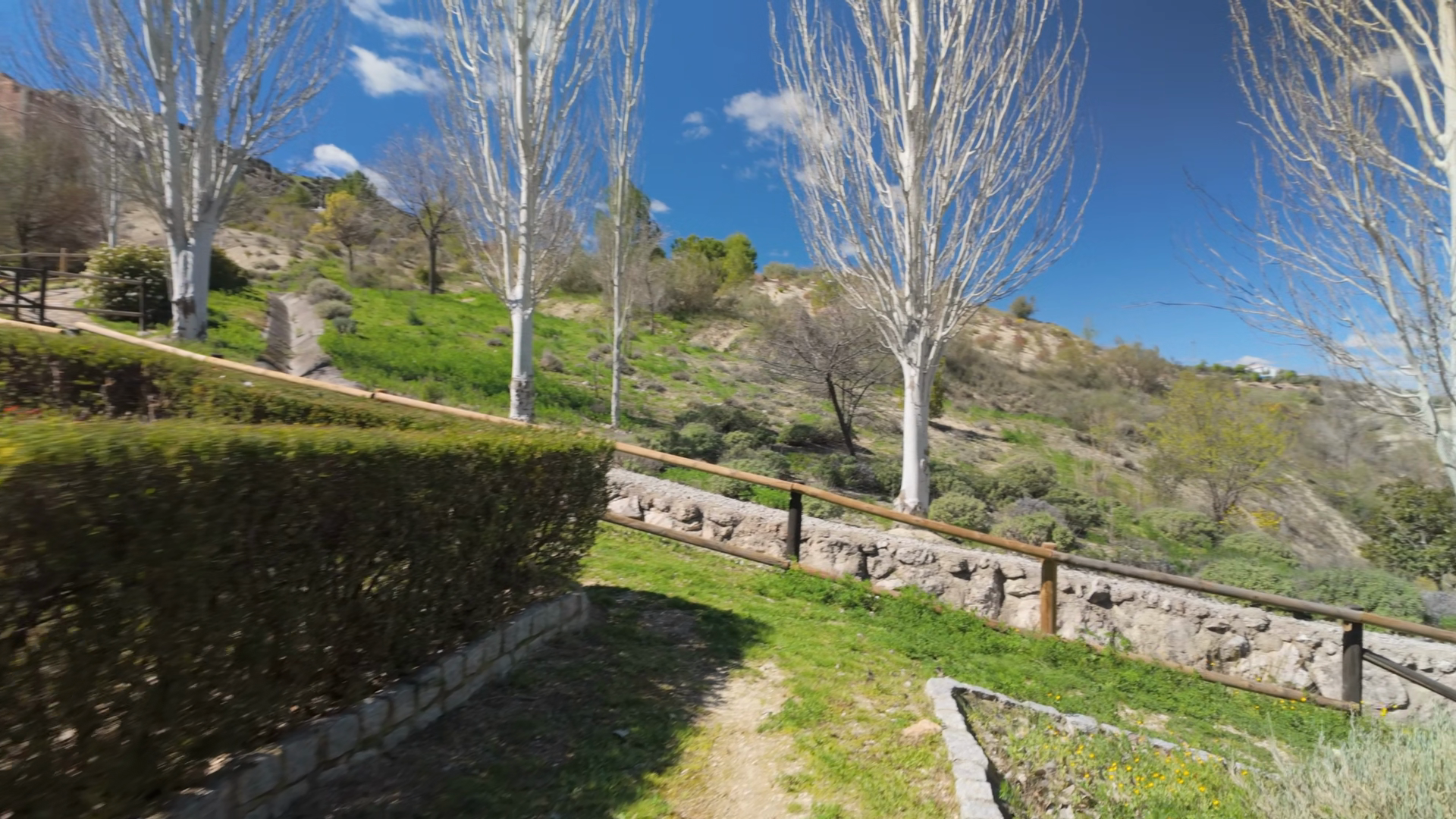 Peaceful Walk Along A Scenic Stone Path Through A Beautiful Sunny ParkÂ