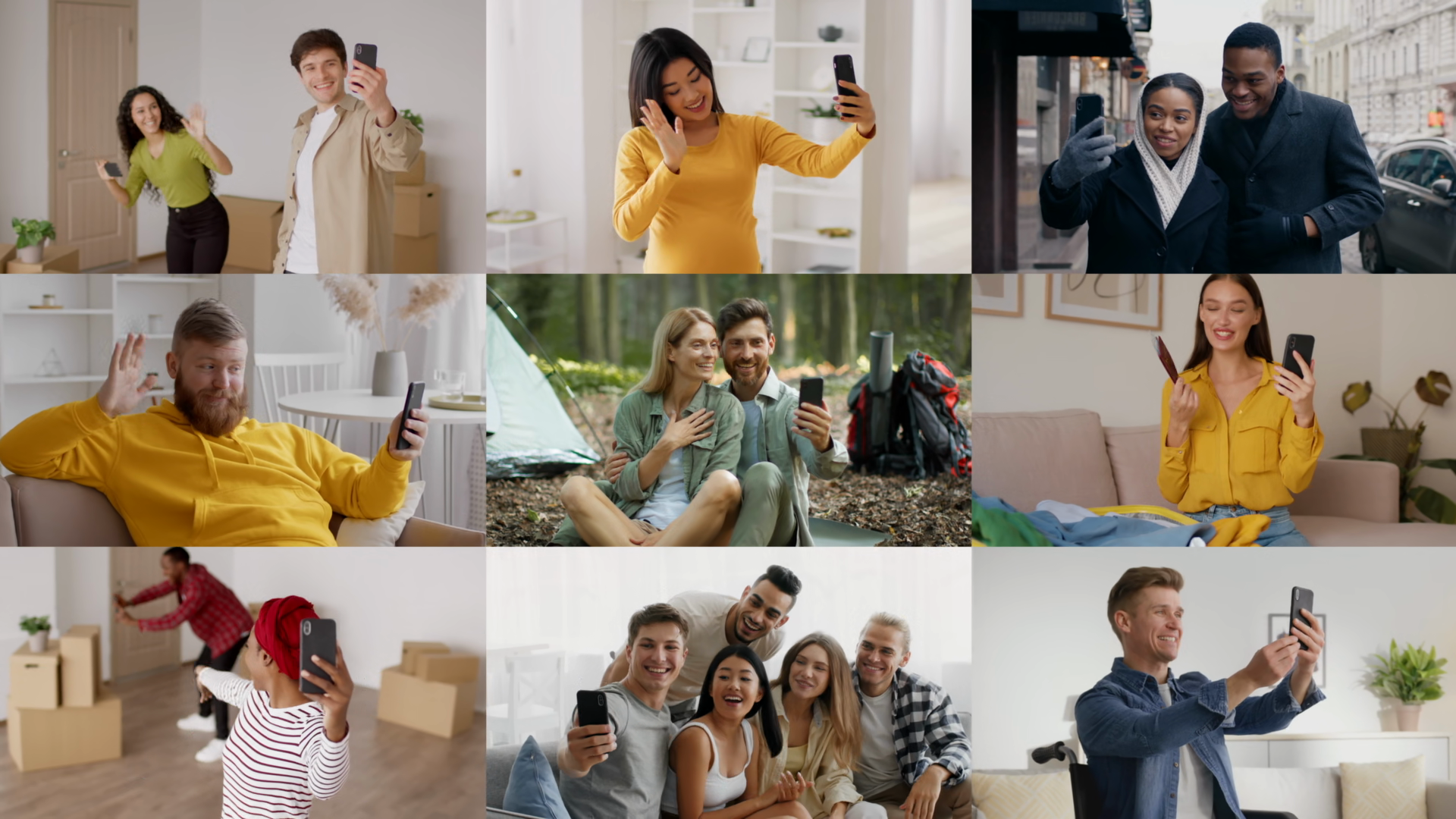 People From Different Backgrounds Engage In Video Calls Using Smartphones Each Individual Displays Unique Expressions And SettingsÂ
