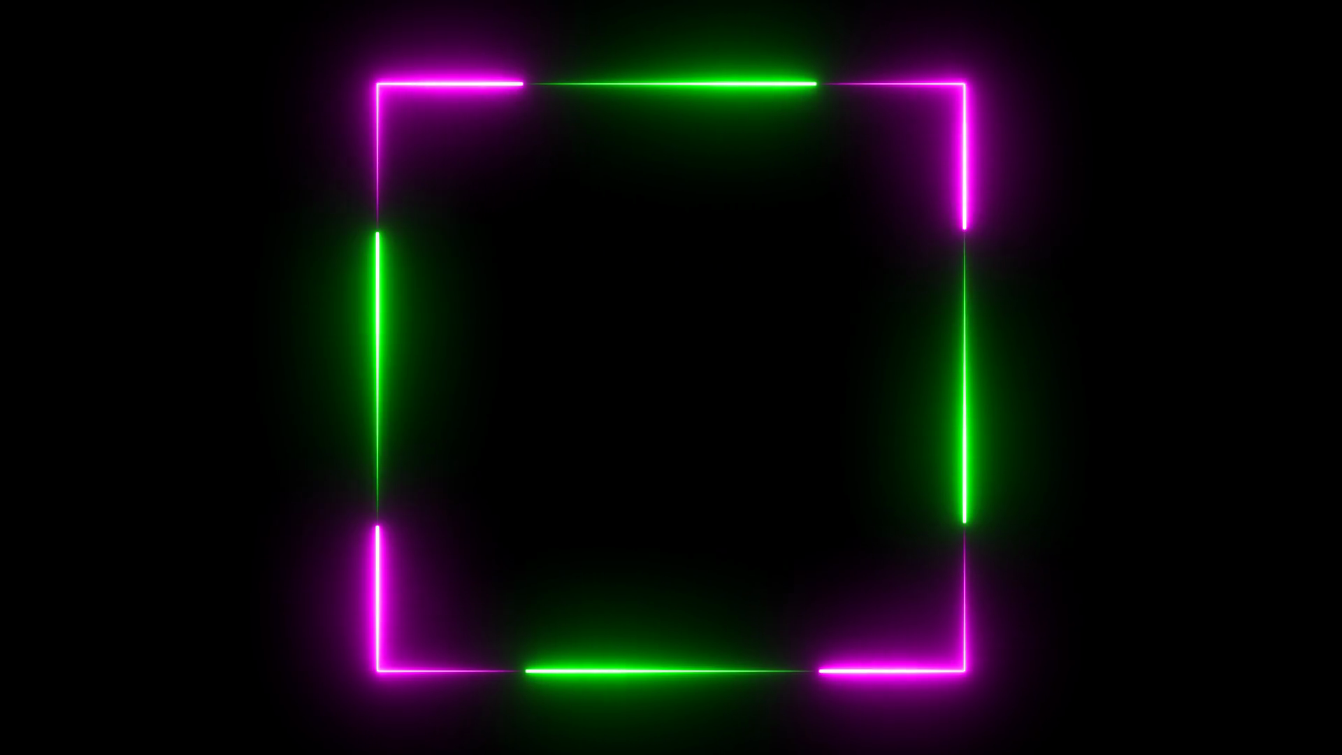 Pink And Green Neon Square Frame Overlay With Glowing Light Accents Seamless Looping On Transparent Background Ideal For New Year Celebration Music Festival And Digital Banner Design