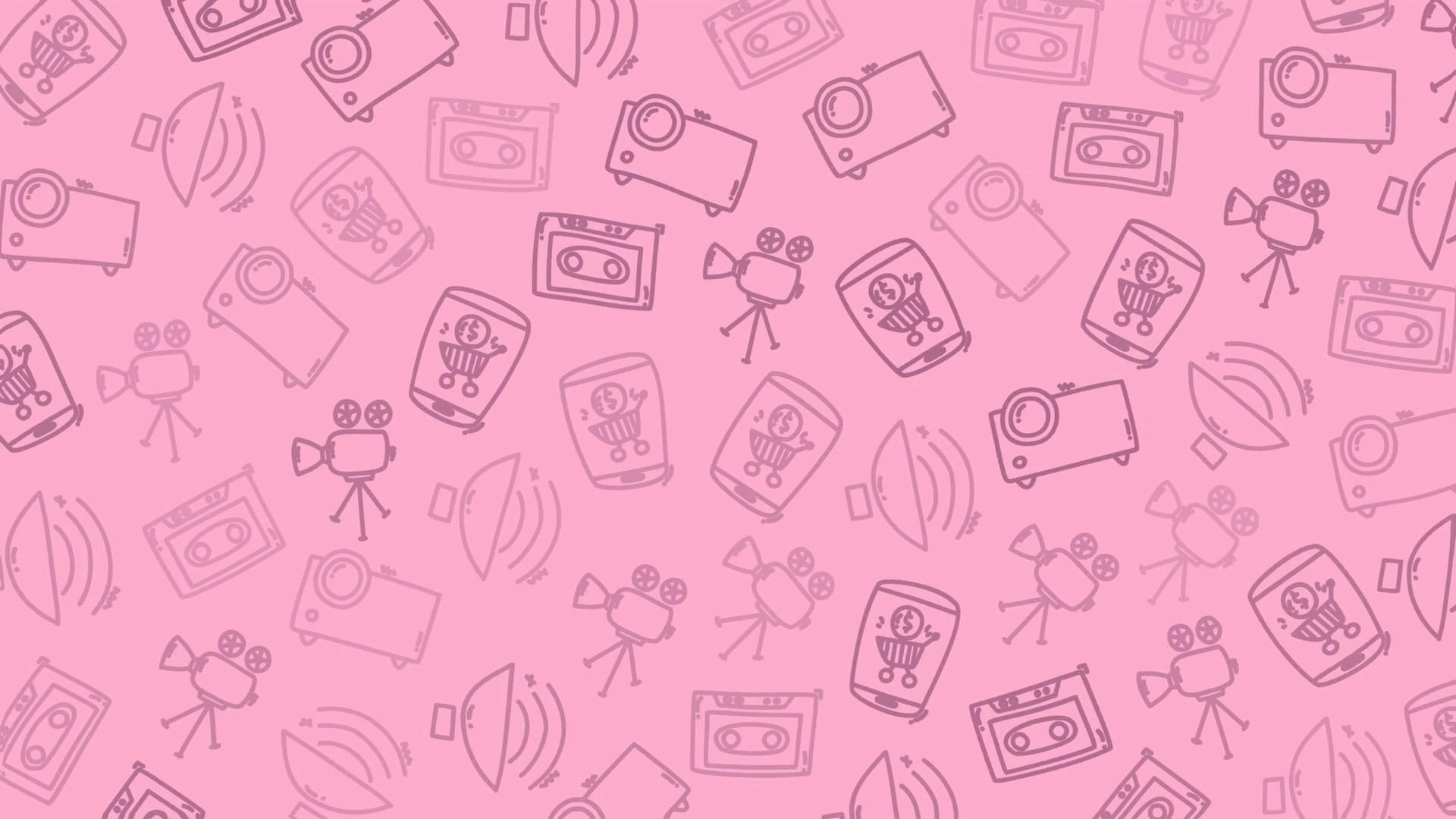 Pink Technology Doodle Pattern Background Featuring Camera Cassette Smartphone And Satellite Icons Perfect For Digital Art Film Festival Poster Or Modern Media Design Celebration Theme
