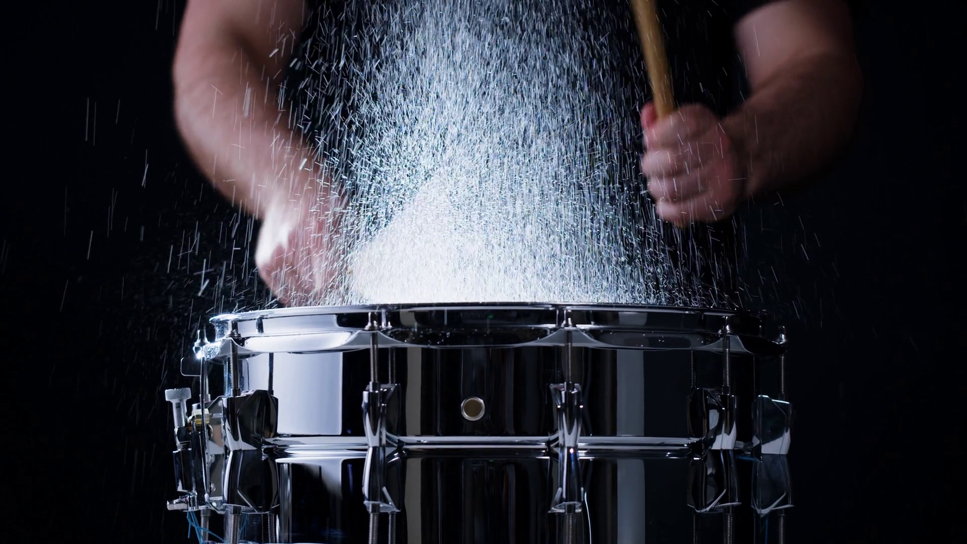Playing Drums With Water Closeup Drummer Playing Musical Instrument Professional Musician PlayerÂ