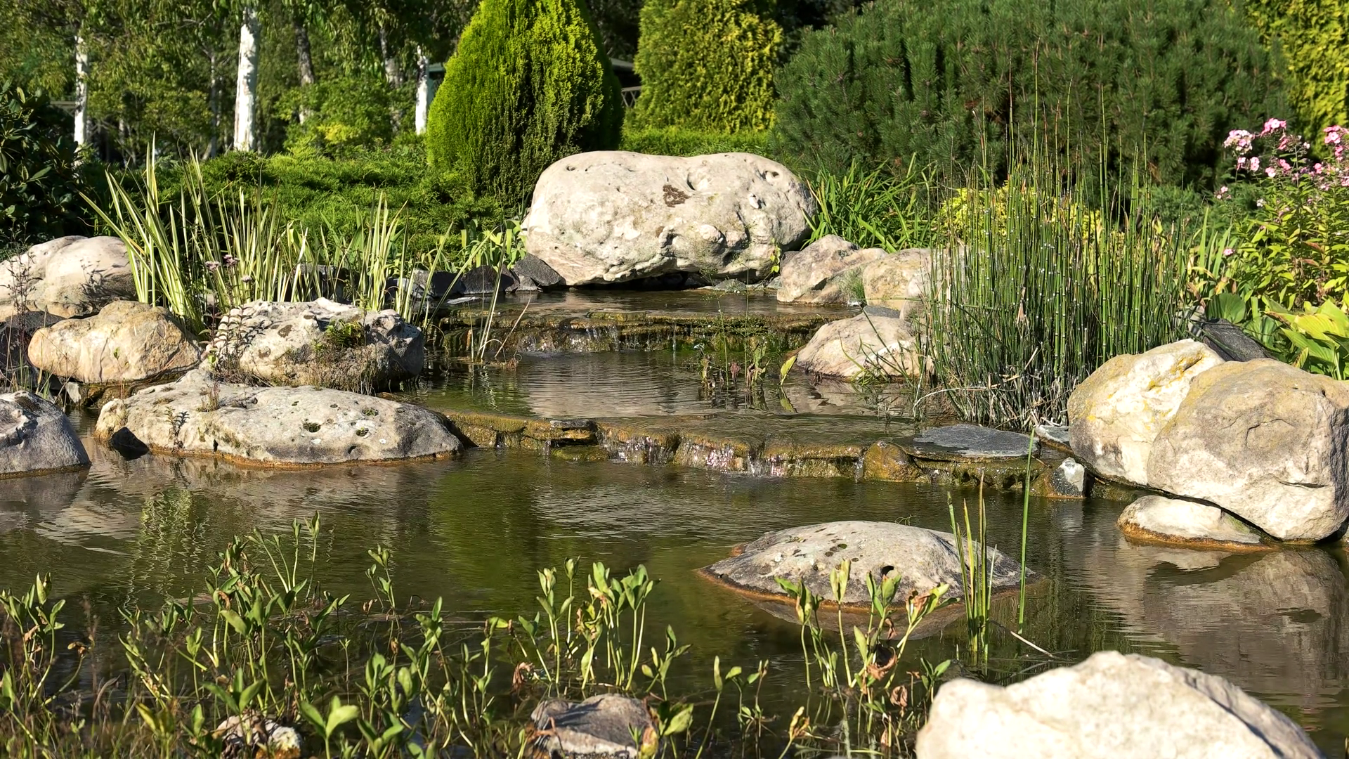Pond with stones. Pl...