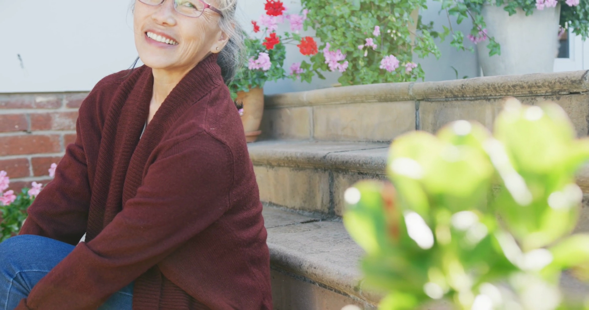 Portrait Of Happy Asian Senior Woman On Sunny Day In GardenÂ