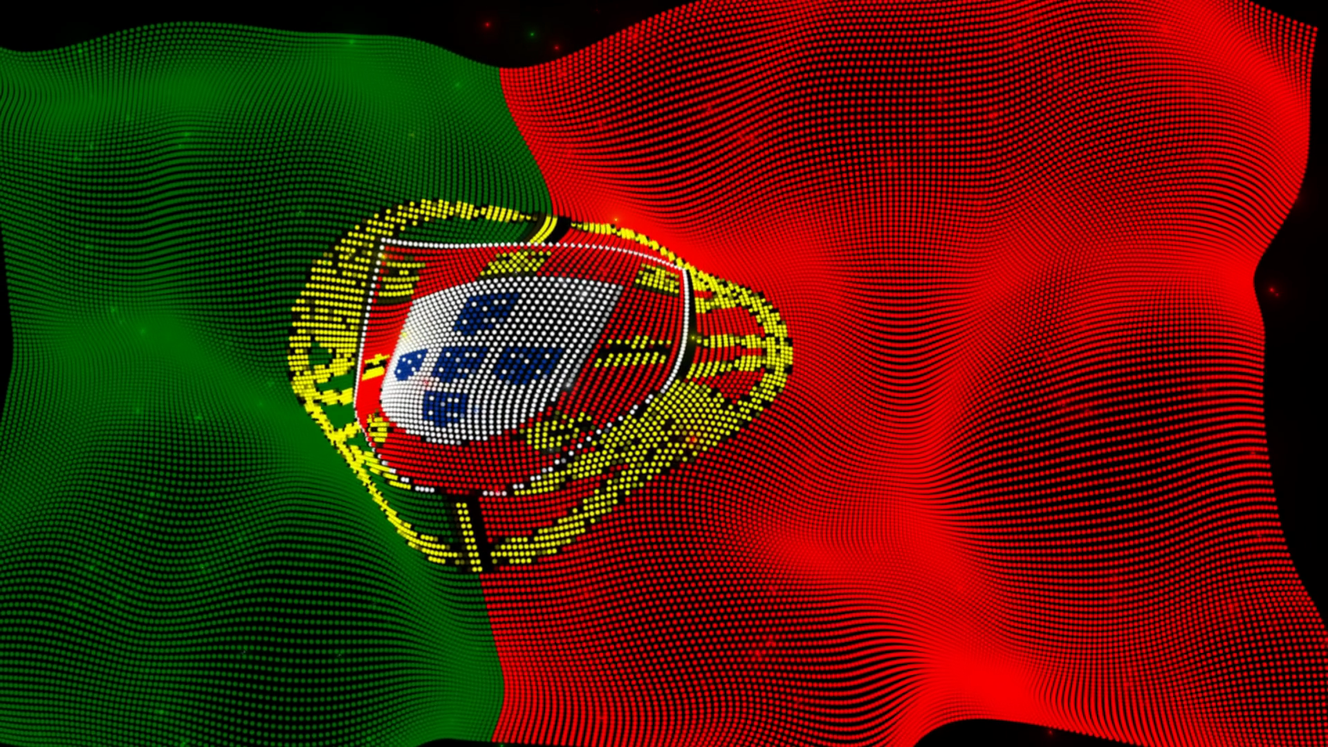 Portugal Flag Digital Particle Waving On Black Background