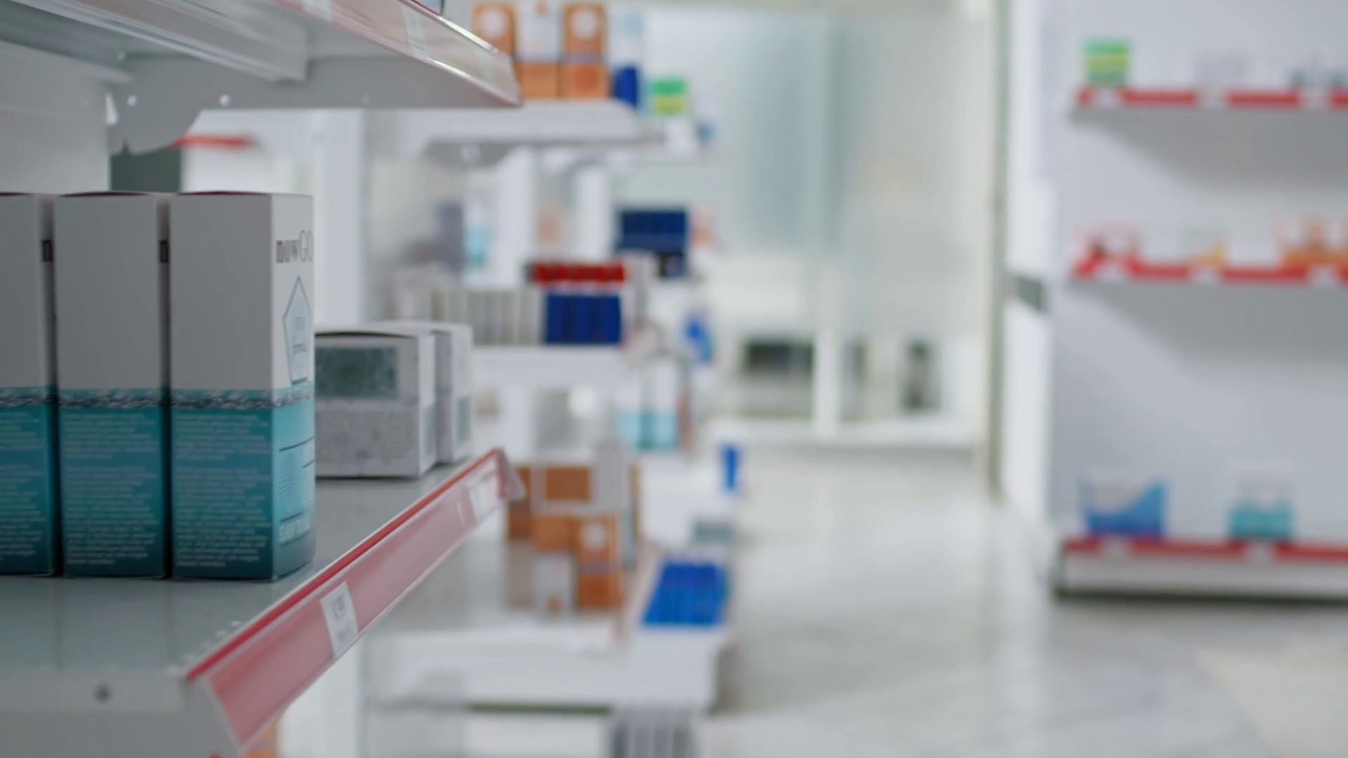 Prescription Drugs Packages On Shelves In Empty Pharmacy Shop Prepared For Customers To Buy Or Take On Health Insurance Drugstore FilledÂ