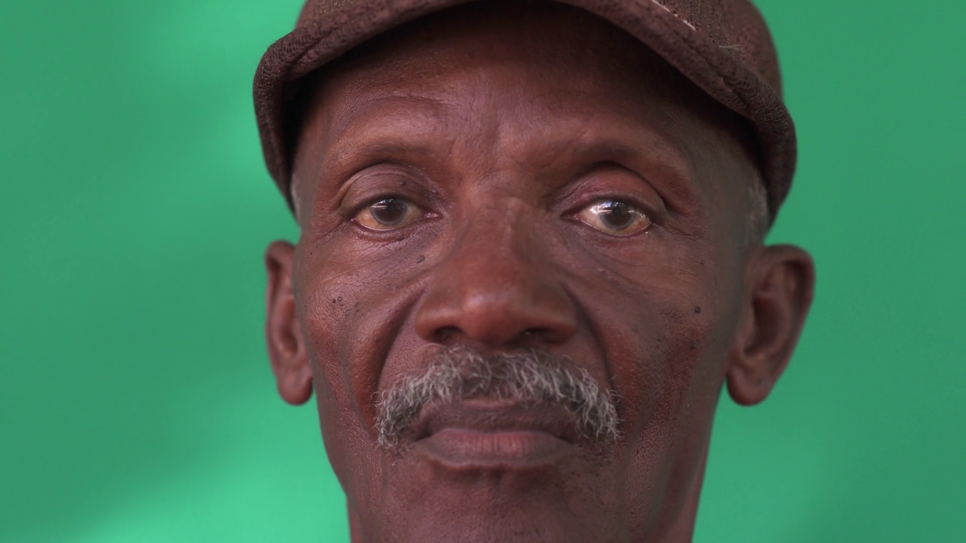 Real Cuban People And Emotions Portrait Of Sad Senior Hispanic Man Looking At Camera Worried Old Black Grandfather With Mustache And Hat From Havana Cuba Close Up Of FaceÂ