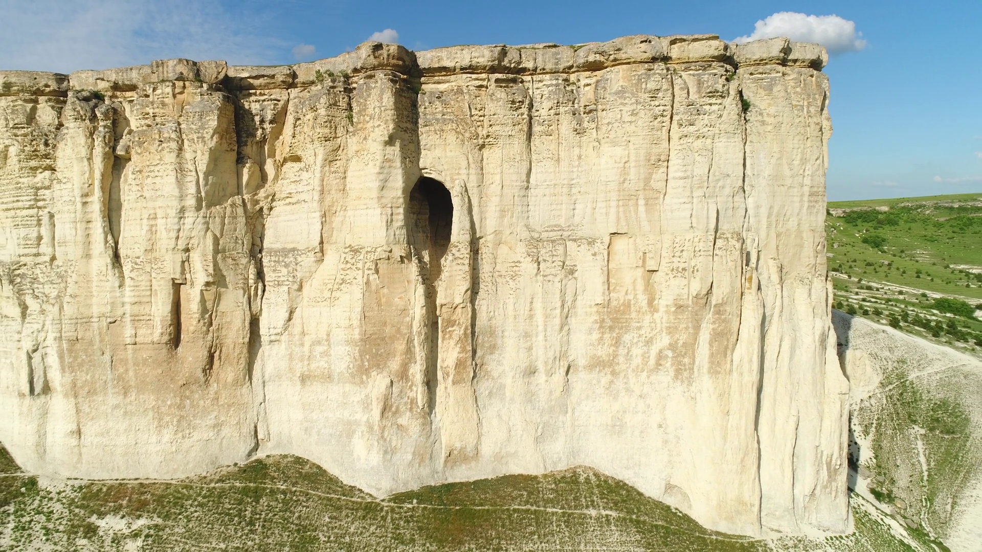Relief White Cliff Slope With Large Hole Or Grotto Near The Top Of Slope Shot Mysterious Cave In The Cliff Closeup ViewÂ
