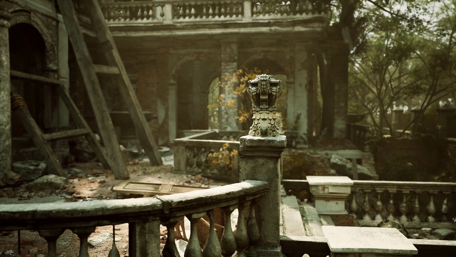 Ruins Of A Dilapidated European Mansion Surrounded By Overgrown Foliage