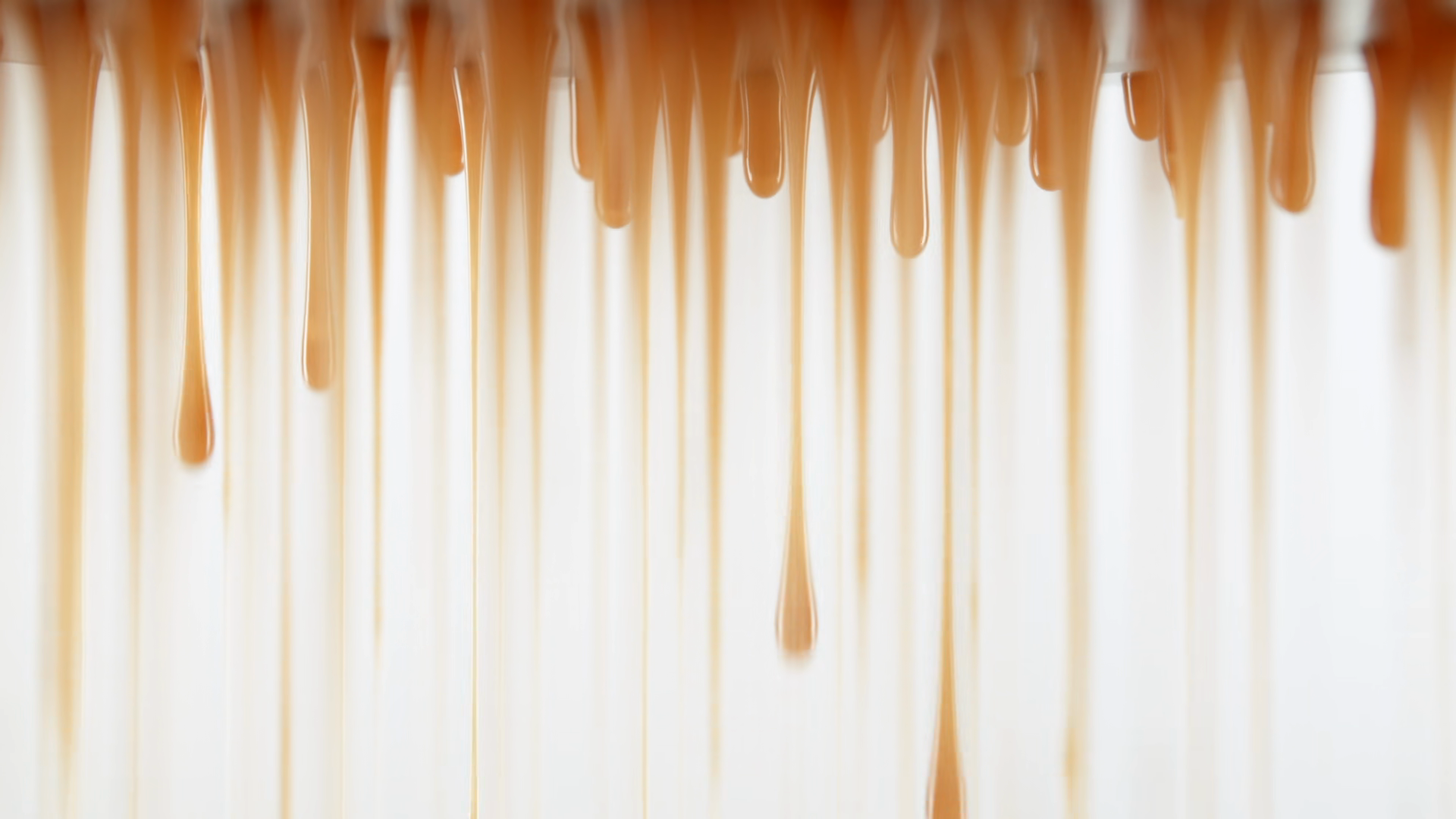 Seamless Dripping Caramel Droplets Flowing Down Liquid Sweet Sauce On White Background Trickle Stream Yellow Orange Tasty Syrup Drip And Flow Confectionery Cooking Dessert And Candies Food ConceptÂ