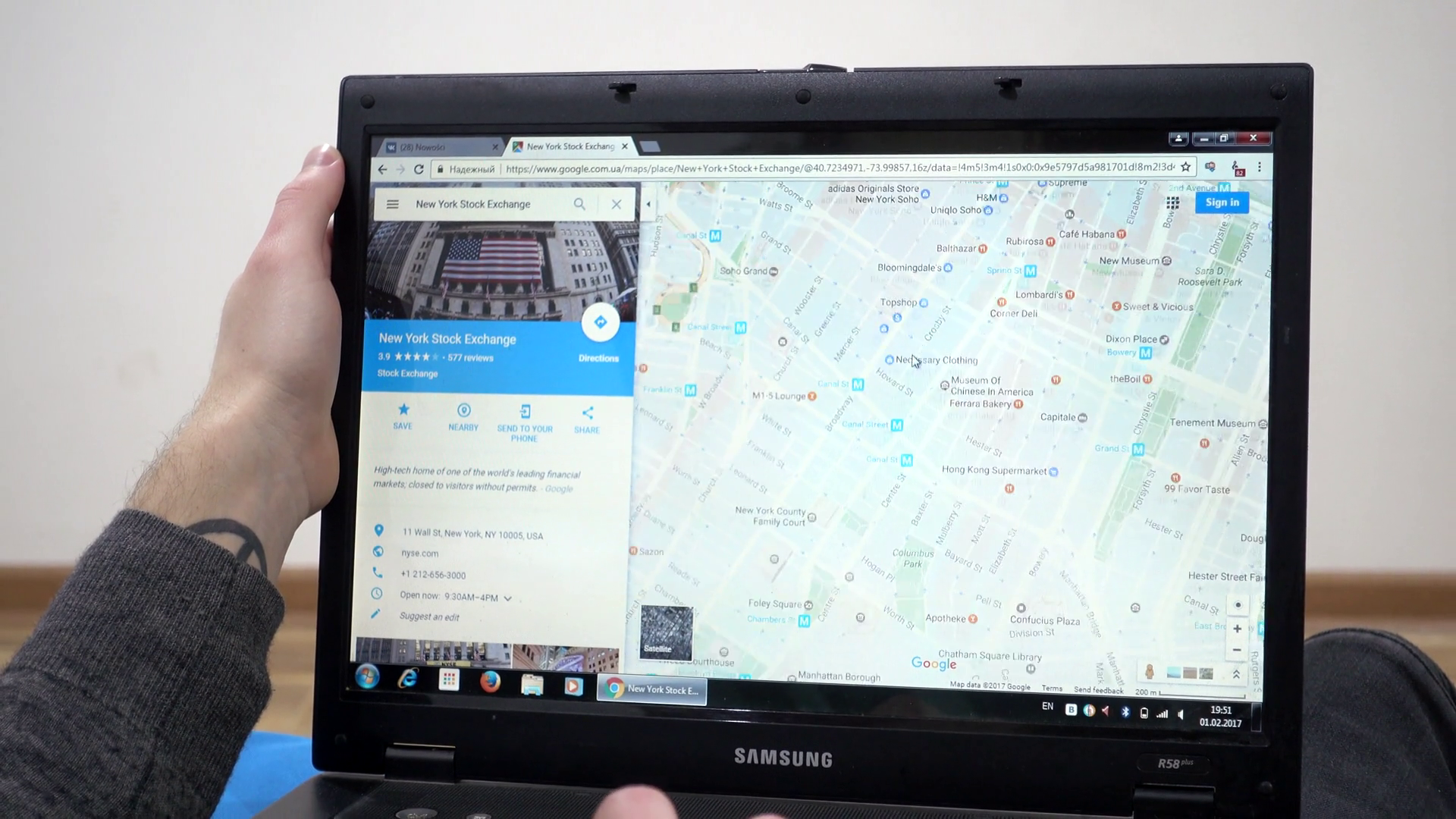 Searching Address In New York In Google Maps Man Using Laptop Planning TravelÂ
