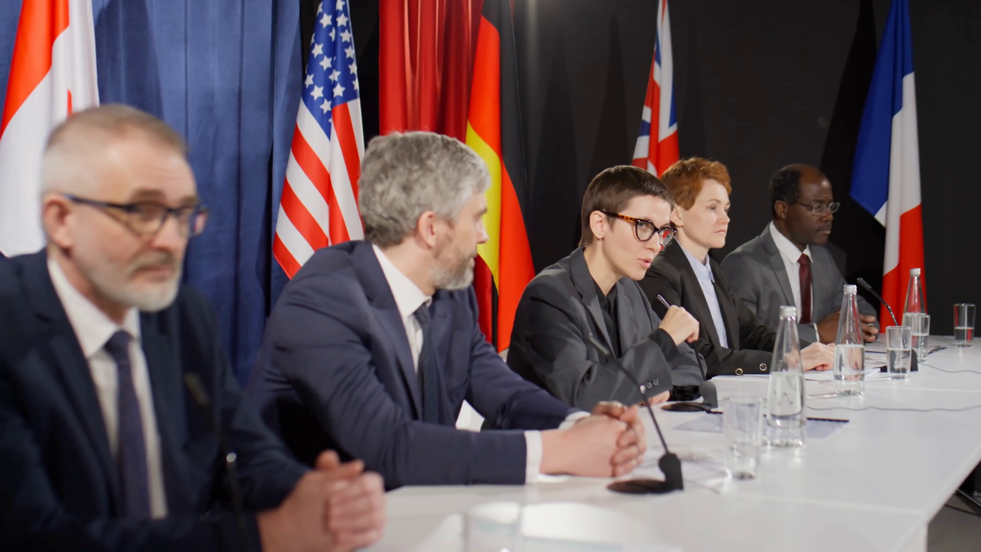 Focus On Young Politician Leading Diverse Representatives In International Press ConferenceÂ