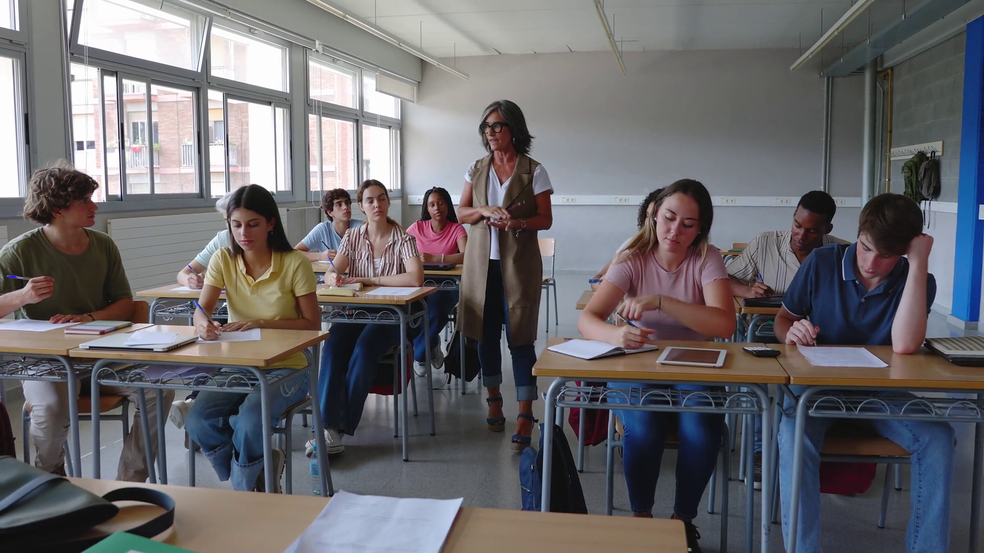 Senior Adult Teacher Giving A Lecture To Her High School Students At ClassroomÂ