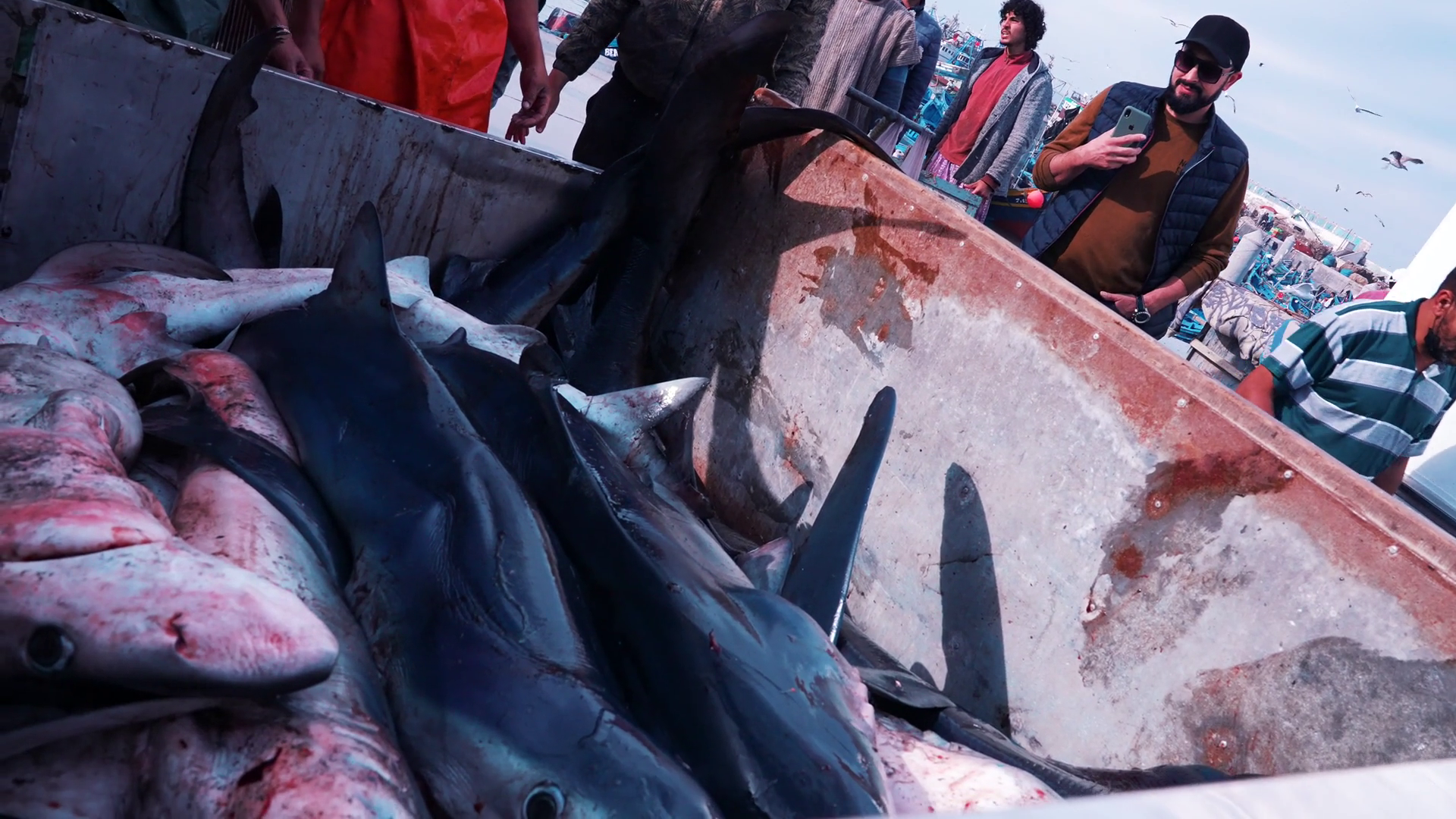 Shark Fins Dead Sharks At The Fishing Market In Essaouira Fishing Port Sharks As Food Shark Meat Has Become Increasingly Popular As Food And ManufactureÂ