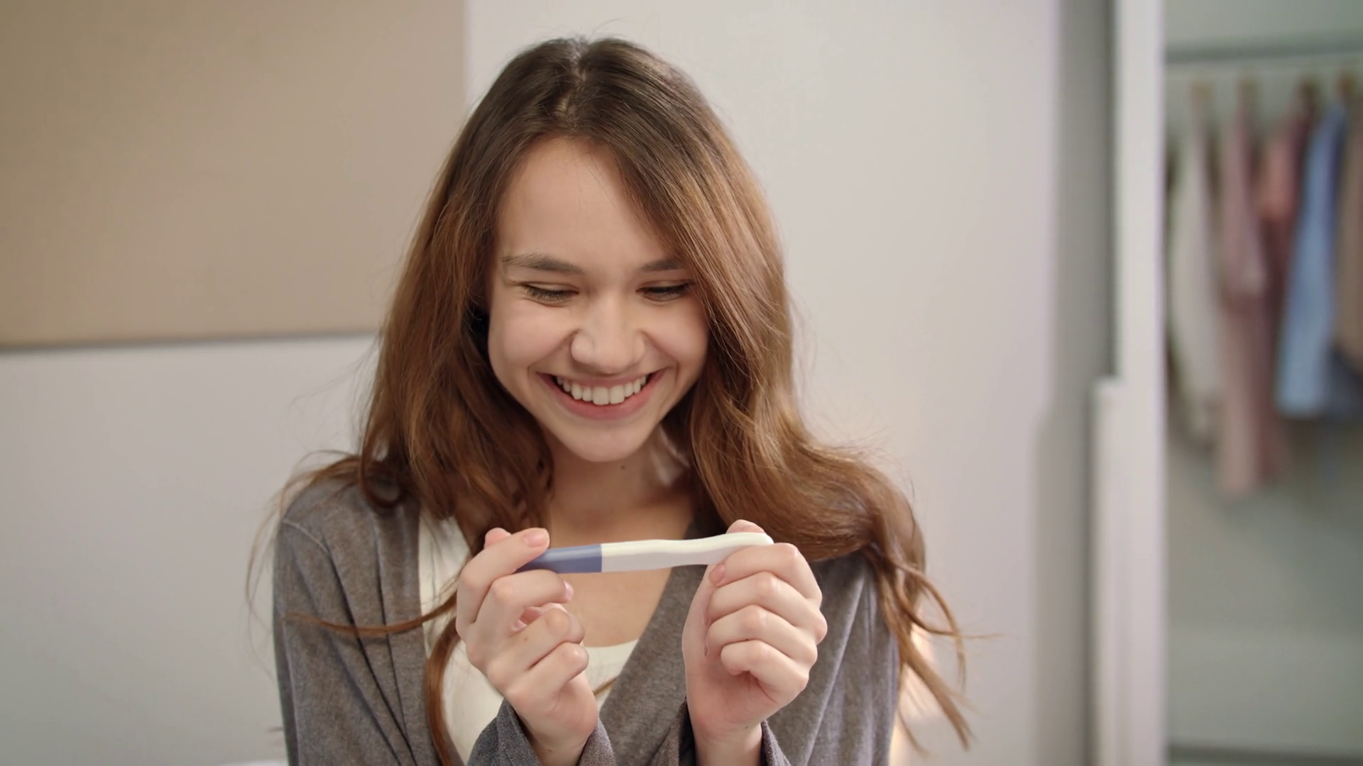 Shocked Woman See Positive Pregnancy Test Result Surprised Woman Face Enjoy Pregnancy Test Result Happy Motherhood Enjoy Kid Anticipation Portrait Of Pregnant Woman TestÂ