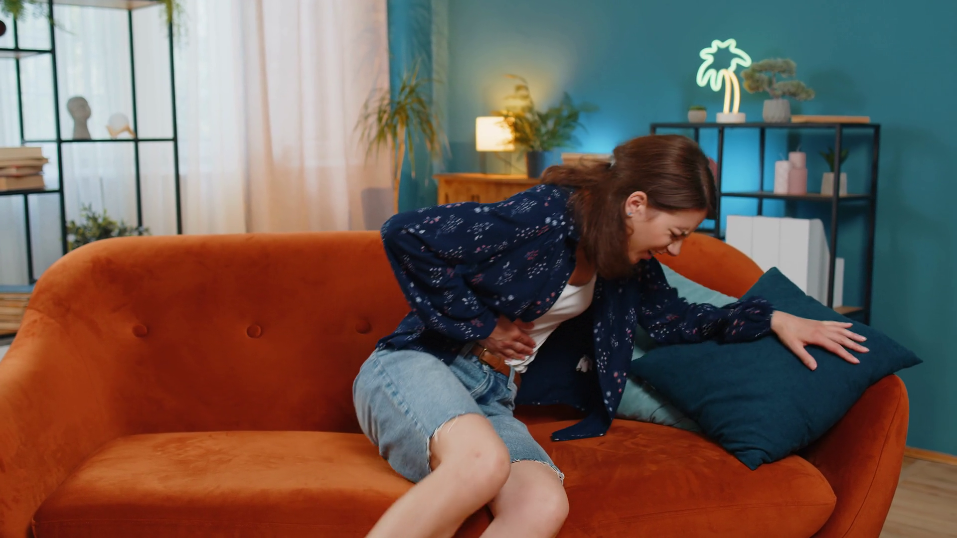 Sick Ill Caucasian Woman Suffering From Period Cramps Painful Stomach Ache Menstrual Pain DiarrheaÂ